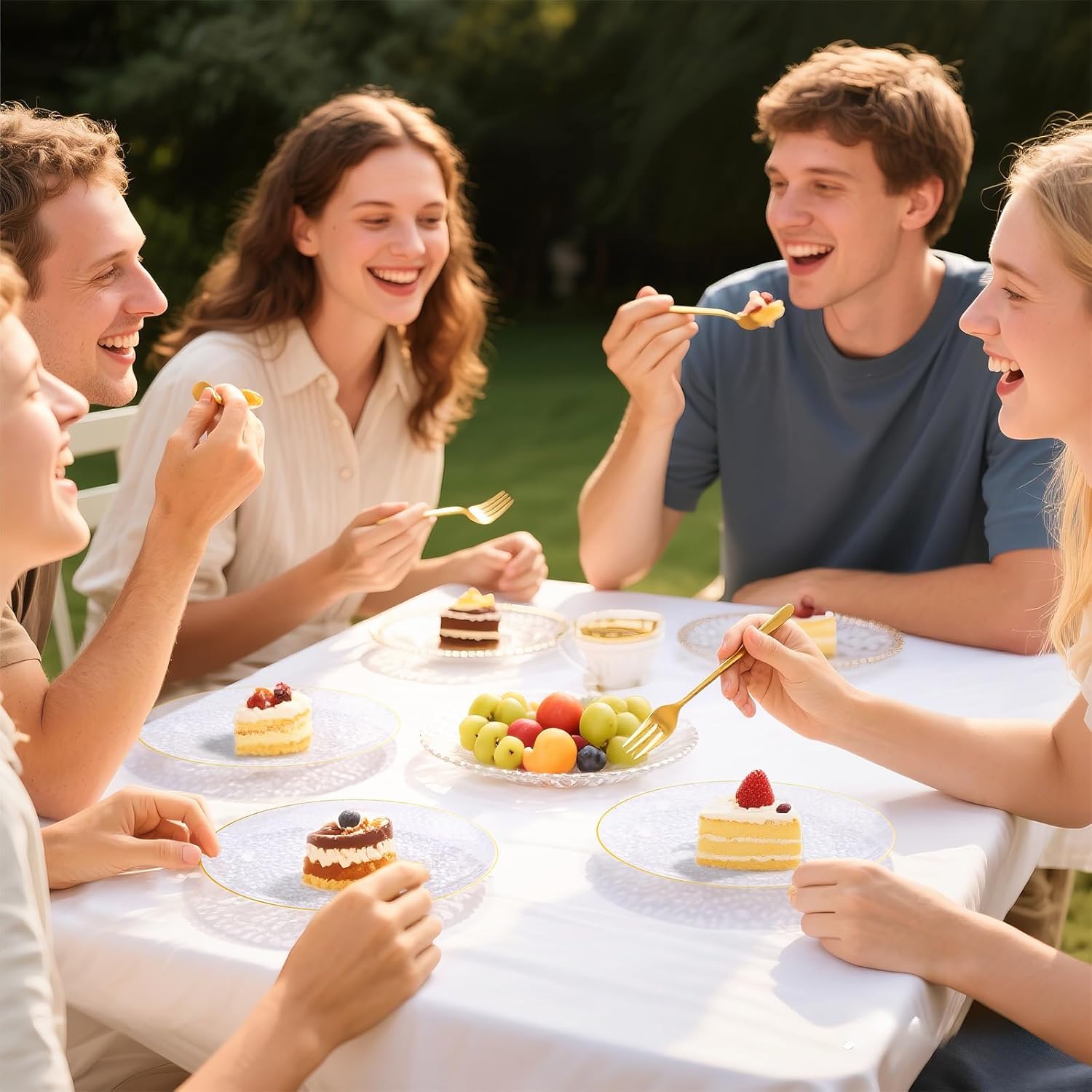 • Elegant Design:Elevate your events with Rubtlamp's hammered plastic plates and forks in sparkling gold. Crafted with elegant clear-and-gold trim, these elegant plastic plates plates add instant sophistication to tables, creating a classy yet dazzling atmosphere. Perfect for weddings, Mother’s Day, birthdays, New Year’s celebrations, and any special gathering where premium style meets practical elegance.