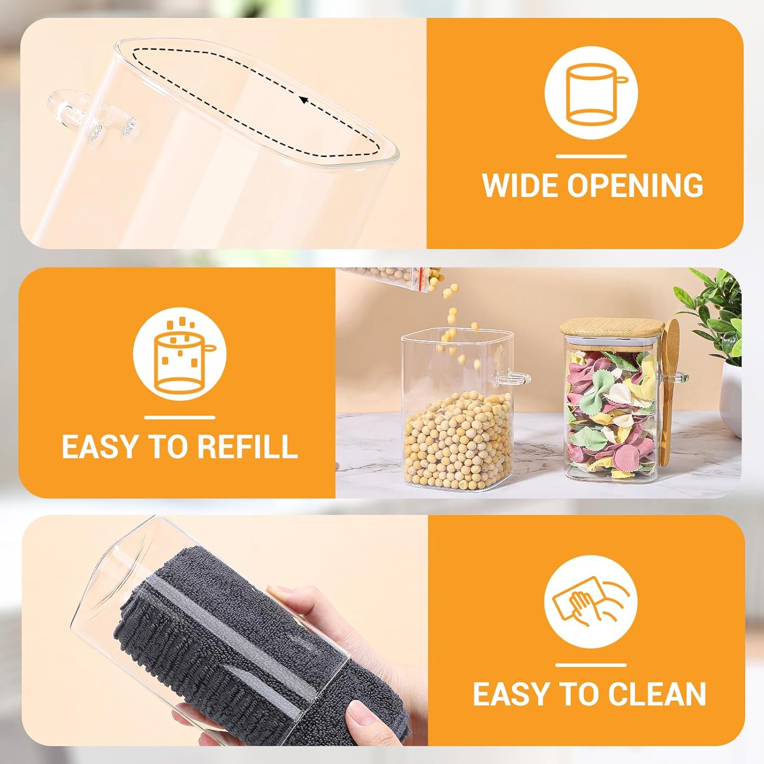 • Easy to Refill and Clean: The wide mouth design of these pantry jars makes it easy to fill, scoop, and access the contents without any mess. Whether you're filling them with flour, spices, or sugar, the wide opening makes it simple to pour in ingredients or use the included bamboo spoons, which is perfect for storing a variety of items like salad jars with lids meal prep or snack storage. In addition, the large opening ensures container easy to clean, great for everyday use.