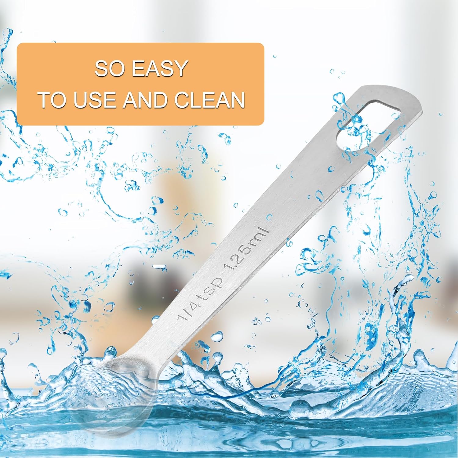 • 【Easy to Clean】In addition to the thoughtful design, our long handle measuring spoons are also very convenient to clean and maintain. Whether it is a simple hand wash or automatic cleaning in the dishwasher, it can be easily handled. After use, just wipe it clean and keep it dry to ensure the long-term cleanliness and service life of long handle tiny measuring spoons
