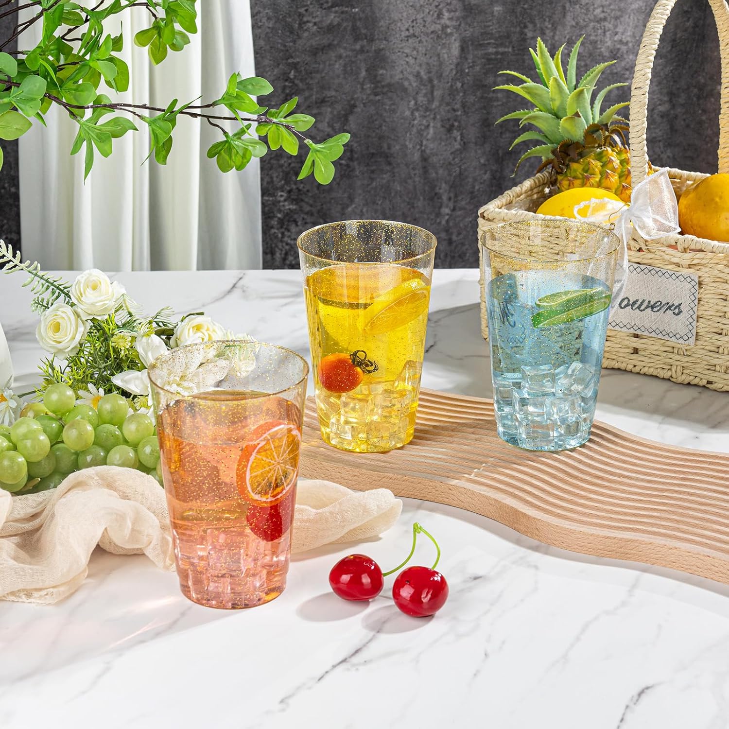 • Premium Quality : These 24 oz gold glitter plastic cups are made of durable and food quality material that has many advantages. Also Keep a stable base.This material can ensures that these gold plastic cups are transparent, durable, resistant to shocks and cracks.