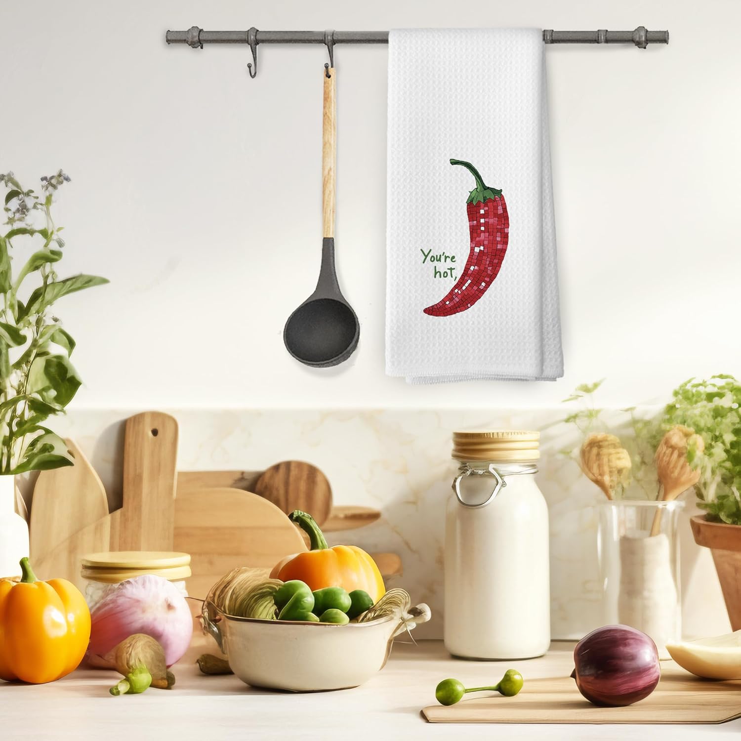 Disco Ball Chilli You're Hot Kitchen Towels, Trendy Retro Food Chilli Pepper Hand Towel, Food Lover Gift Kitchen Gift Chili Decorative Tea Towel Dish Towels 16x24 Inch