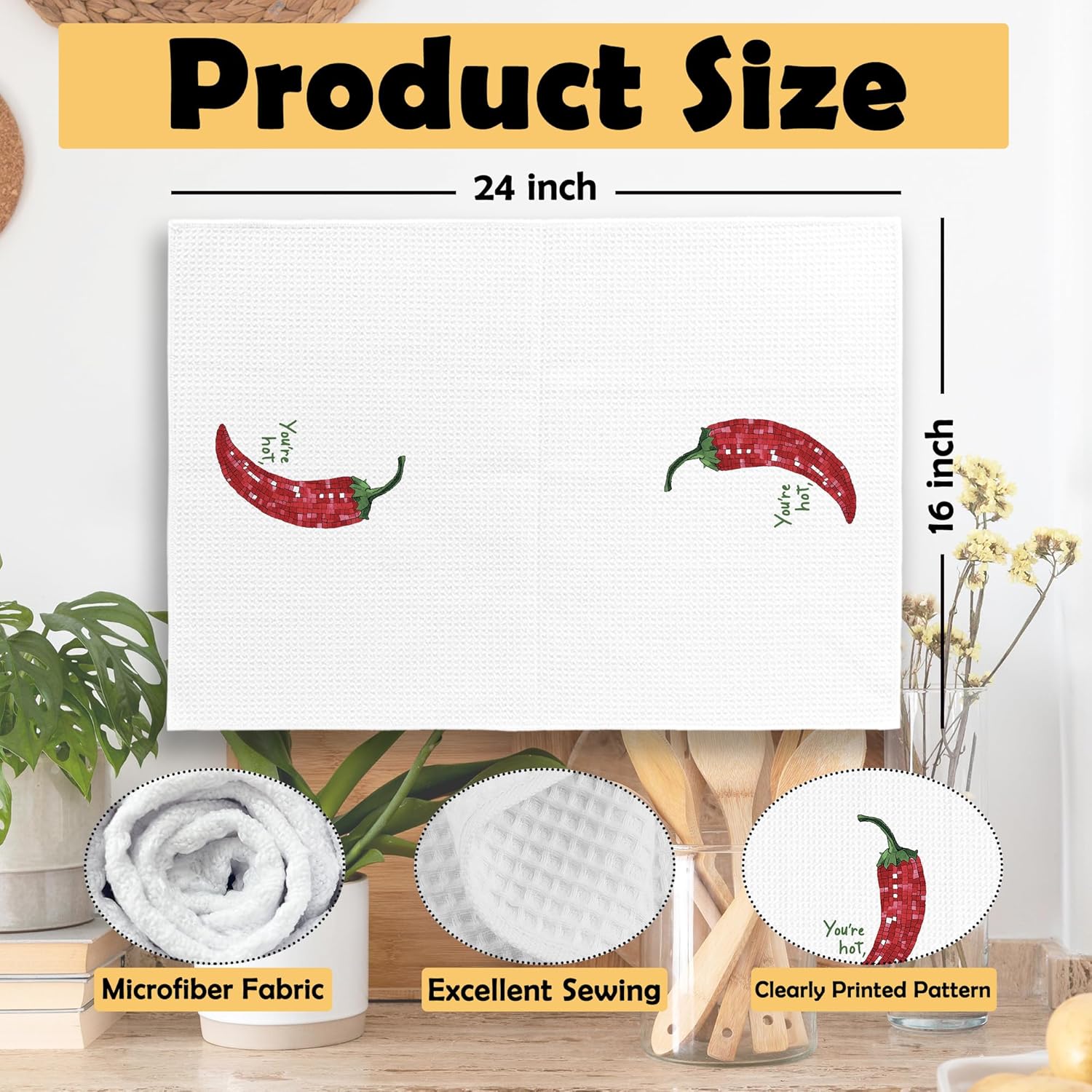 • 【Premium Material】: Measuring 16 x 24 inches, Our fun kitchen towels are made of high-quality microfiber waffle weave, lightweight and sturdy, comfortable to the touch, washable and reusable