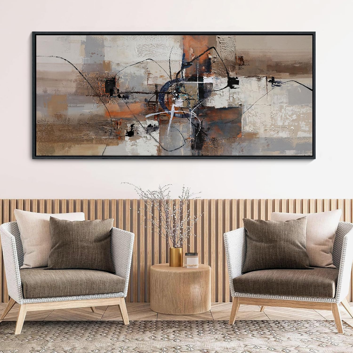 YDYSUNE Abstract Painting Wall Art Textured Picture for Living Room Orange Home Bedroom Decoration Modern Framed Large Artwork Decor 70x31IN Brown gray wall decoration