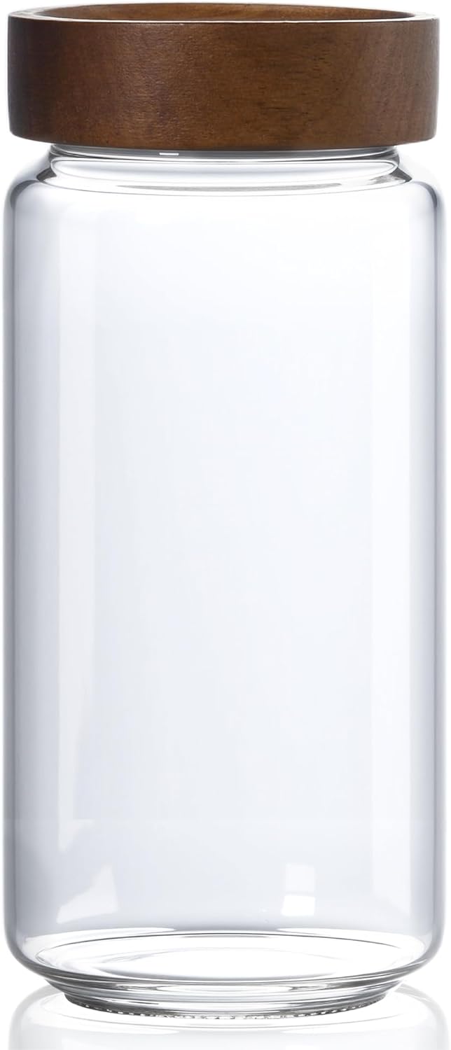 30 oz/900 ml Glass Jar with Airtight Wooden Screw Top Lid, Clear Stackable Food Storage Canister, Large Tall Decorative Glass Container for Coffee, Candy, Cookie, Sugar, Oatmeal, Salt, Pasta