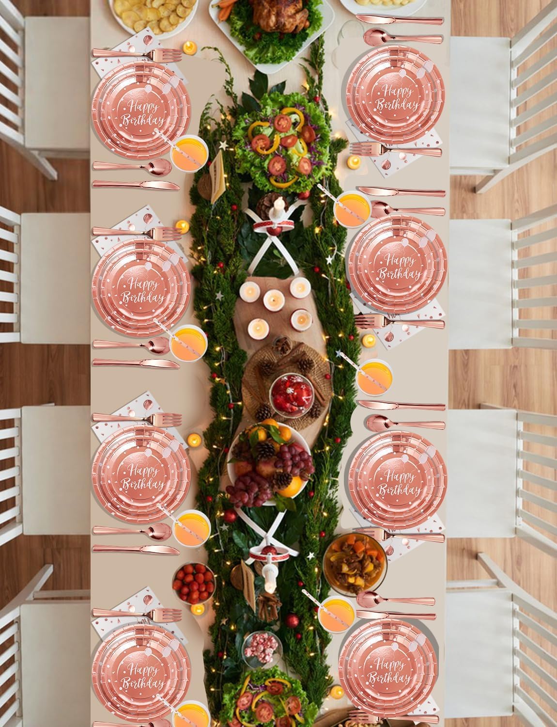 Birthday Party Tableware, 161 Pieces Rose gold Party Supplies, Dinnerware Sets Include Paper Plates Napkins Cups Silverware, for Shower Engagement Parties Decoration -20 Serves