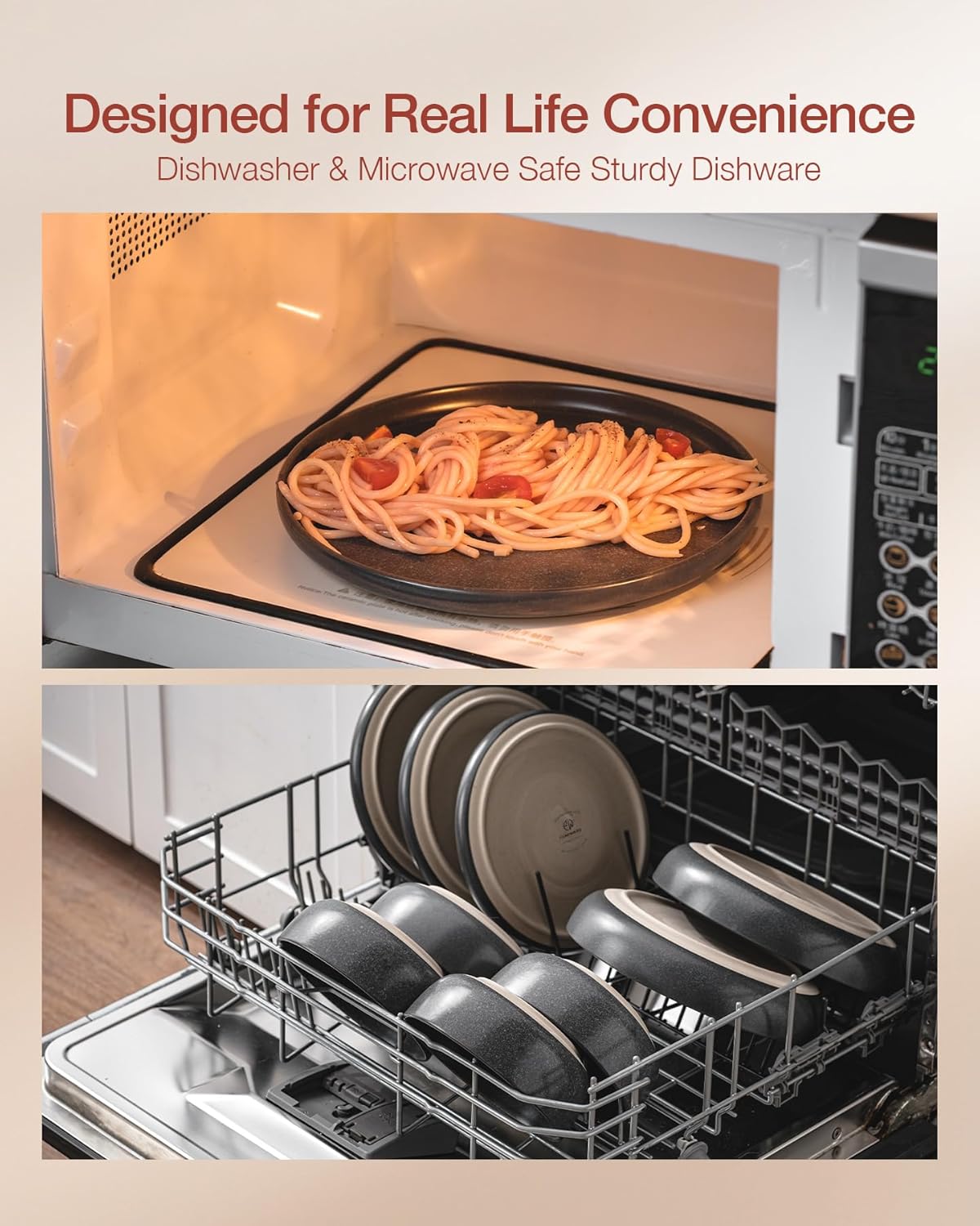 • WITHSTAND THE TEST OF TIME - Made from organic and natural clay, these dish sets are fired at 2340 °F for 13.5 hours, resulting in a sturdy, long-lasting, and chip-resistant product designed for long-term use.