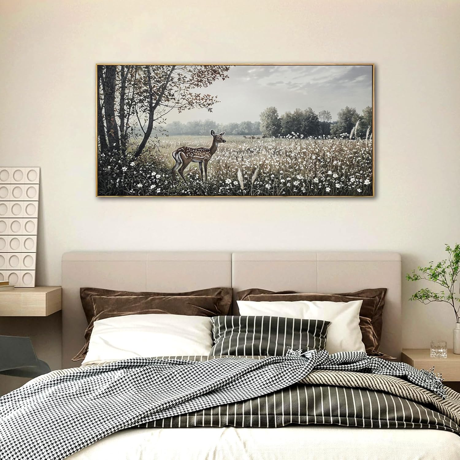 yiijeah Farmhouse Wall Decor - Large Canvas Wall Art Artwork Deer Landscape Vintage Floral Rustic Print Neutral Picture Artwork for Home Living Room Bedroom Office Decoration