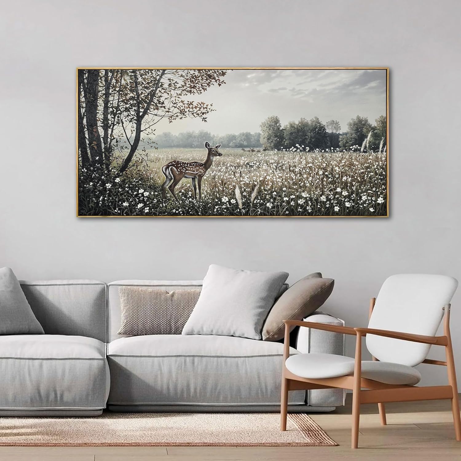 yiijeah Farmhouse Wall Decor - Large Canvas Wall Art Artwork Deer Landscape Vintage Floral Rustic Print Neutral Picture Artwork for Home Living Room Bedroom Office Decoration
