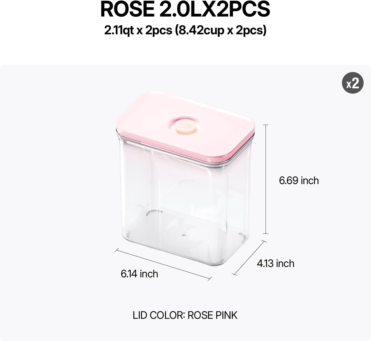 VAKUEN Premium Airtight Food Storage Containers ROSE 2.0L(2.11qt) 2P/SET, Patented Double Silicone Lining, 100% Leak Proof, BPA-FREE