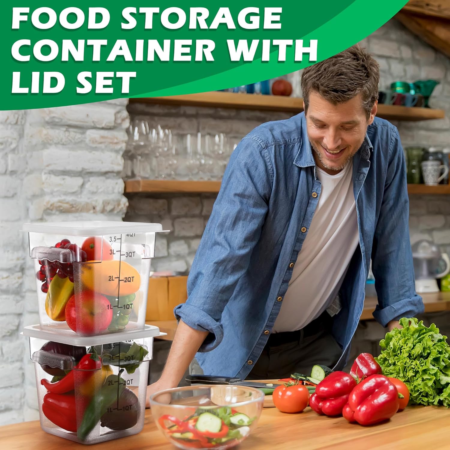 • Proper Size: the capacity of our food containers with lids is about 4 quarts/ 4 L; It measures approx. 7.4 x 7.4 x 7.28 inches/ 18.8 x 18.8 x 18.5 cm, which can hold freshly fruit salads, sliced vegetables, dry ingredients, sugar, flour, cereal, rice and some pre processed food; Besides, they can also store soups, sauces, doughs and some mixed liquids