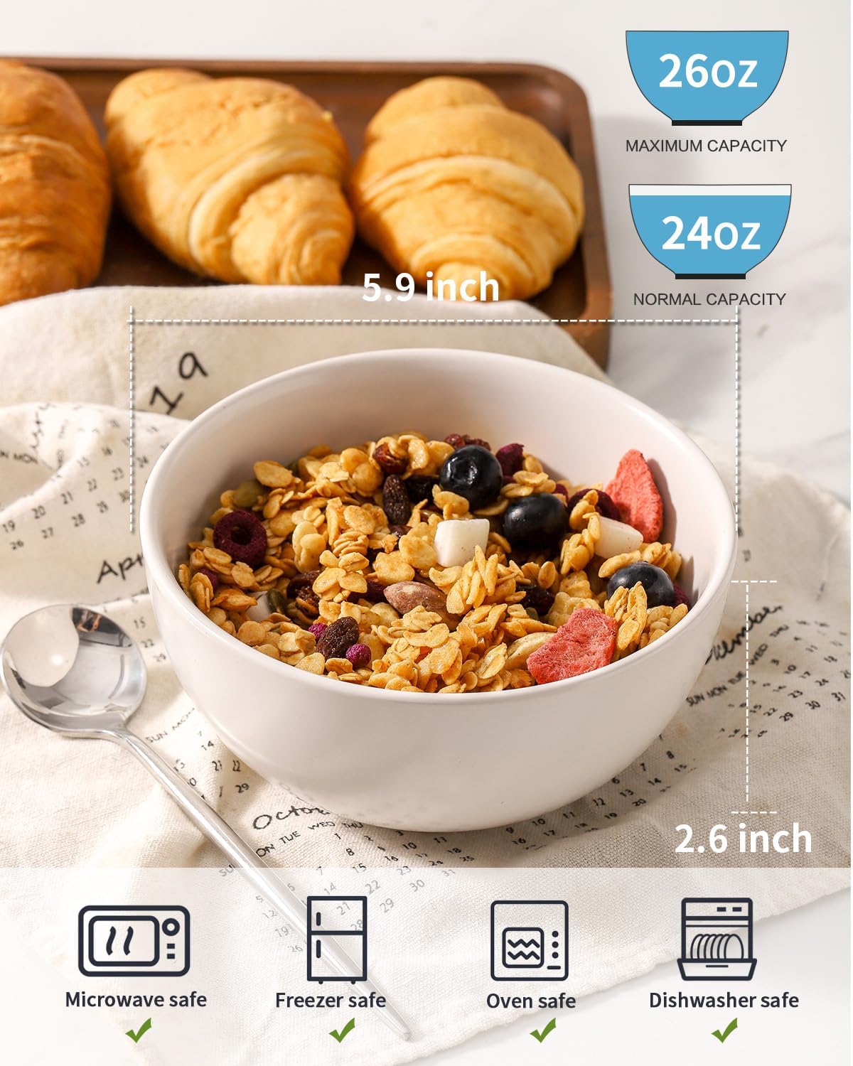 • Microwave & Dishwasher Safe: Crafted from high-quality stoneware, Tikooere cereal bowls are oven safe, microwave safe, freezer safe, and dishwasher safe for easy cleanup and convenience. Designed to endure daily use without chipping or cracking, these microwave bowls combine strength with simplicity for seamless kitchen routines.