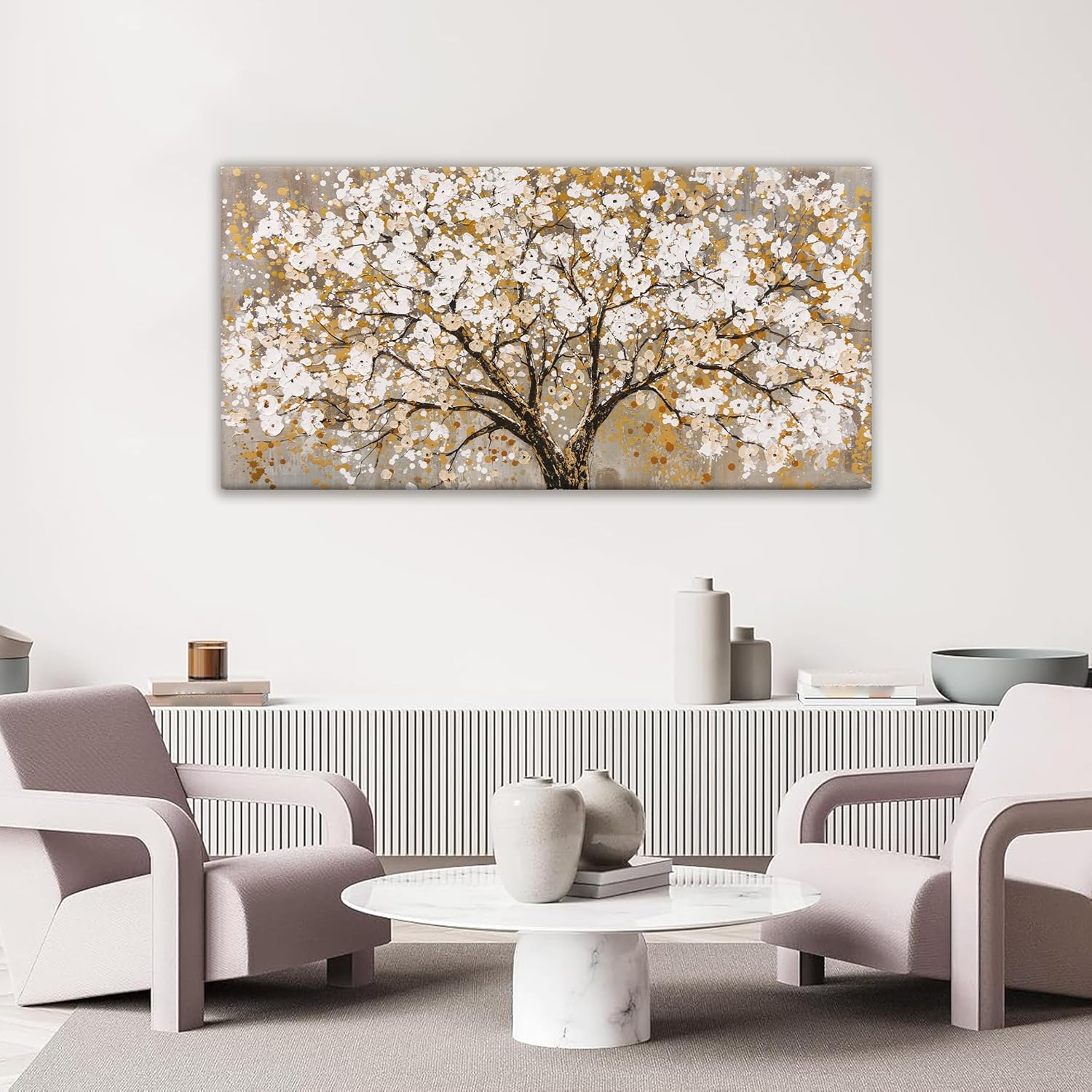 Wall Art Gold Nature Tree Of Life Abstract Canvas Painting Canvas Art Wall Decor Picture Modern Wall Art Landscape Artwork For Living Room Bedroom Bathroom Office Home Decor 24"X48"Painting