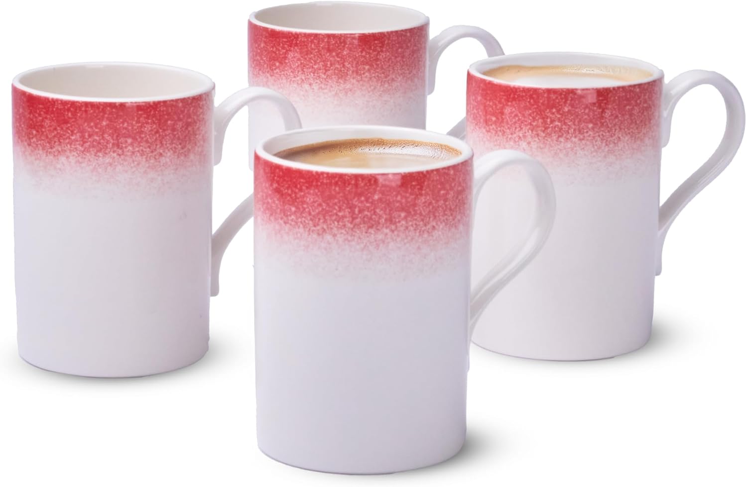 Portmeirion Potter's 9oz Mist Breakfast Mug (Set of 4) - Elegant Earthenware Tea Mugs with Handle, Microwave, Dishwasher & Freezer Safe - Classic Mist Design, Ideal Gift for Coffee Lovers (Red)