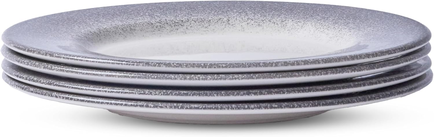 Portmeirion Potter's Mist 8" Dinner Plate (Set of 4) - Handcrafted Earthenware Plates with Accent Rim, Microwave & Dishwasher Safe - Ideal Tableware for Modern & Traditional Dining (Grey Mist)