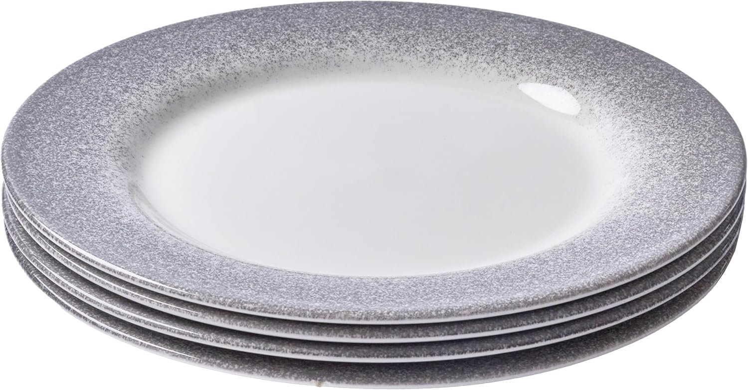 Portmeirion Potter's Mist Dinner Plate (Set of 4) - 10.5" Earthenware Plates with Classic Mist Rim - Microwave, Dishwasher, Freezer, Oven Safe - Ideal Modern Dinnerware Set (Grey Mist)