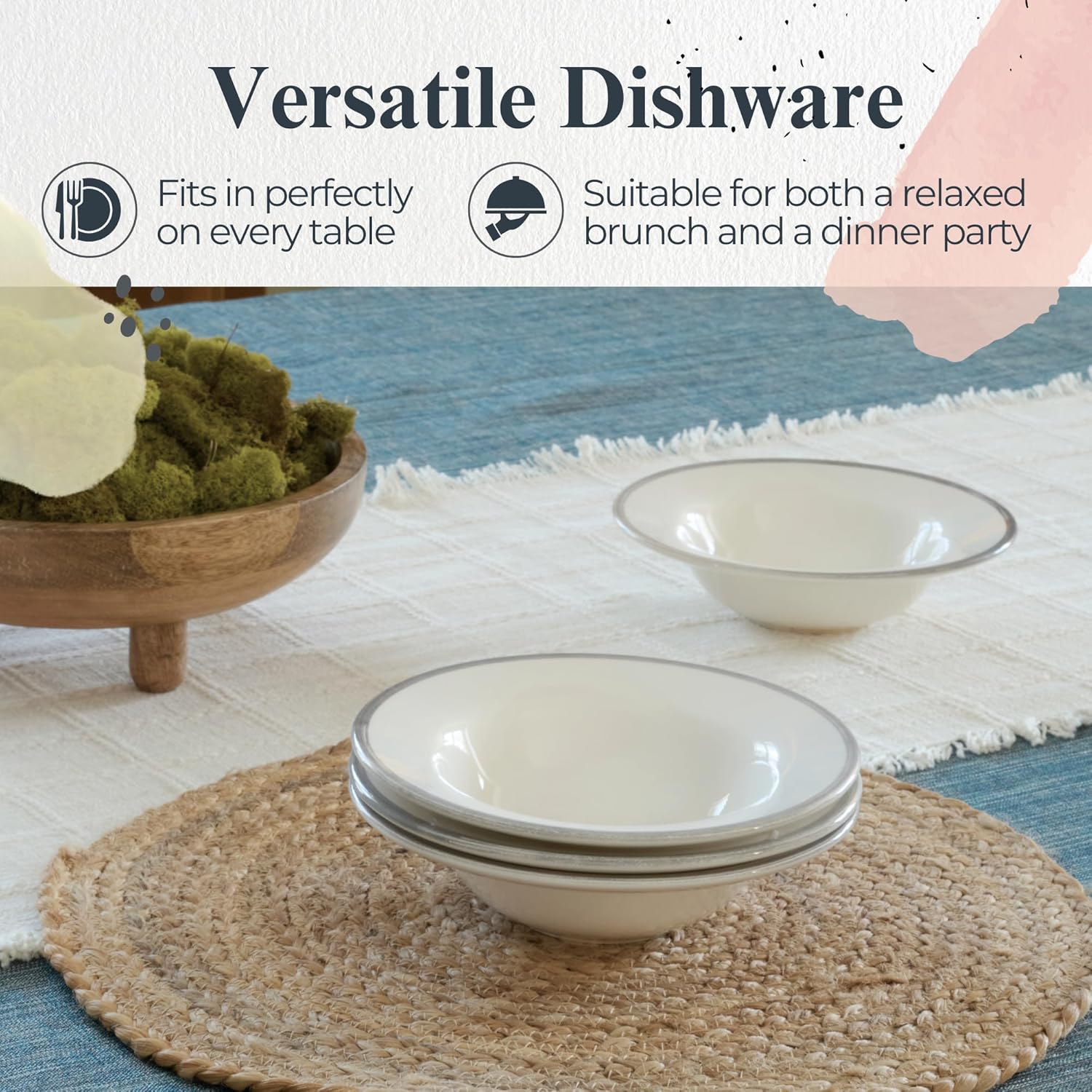 • Classic Grey & White Dinnerware: Each bowl is encircled with a striking grey brushstroke on a white base, giving your dinnerware collection a touch of elegance that complements both traditional and modern dining settings seamlessly.