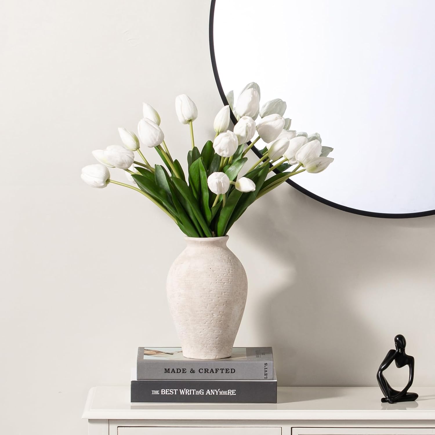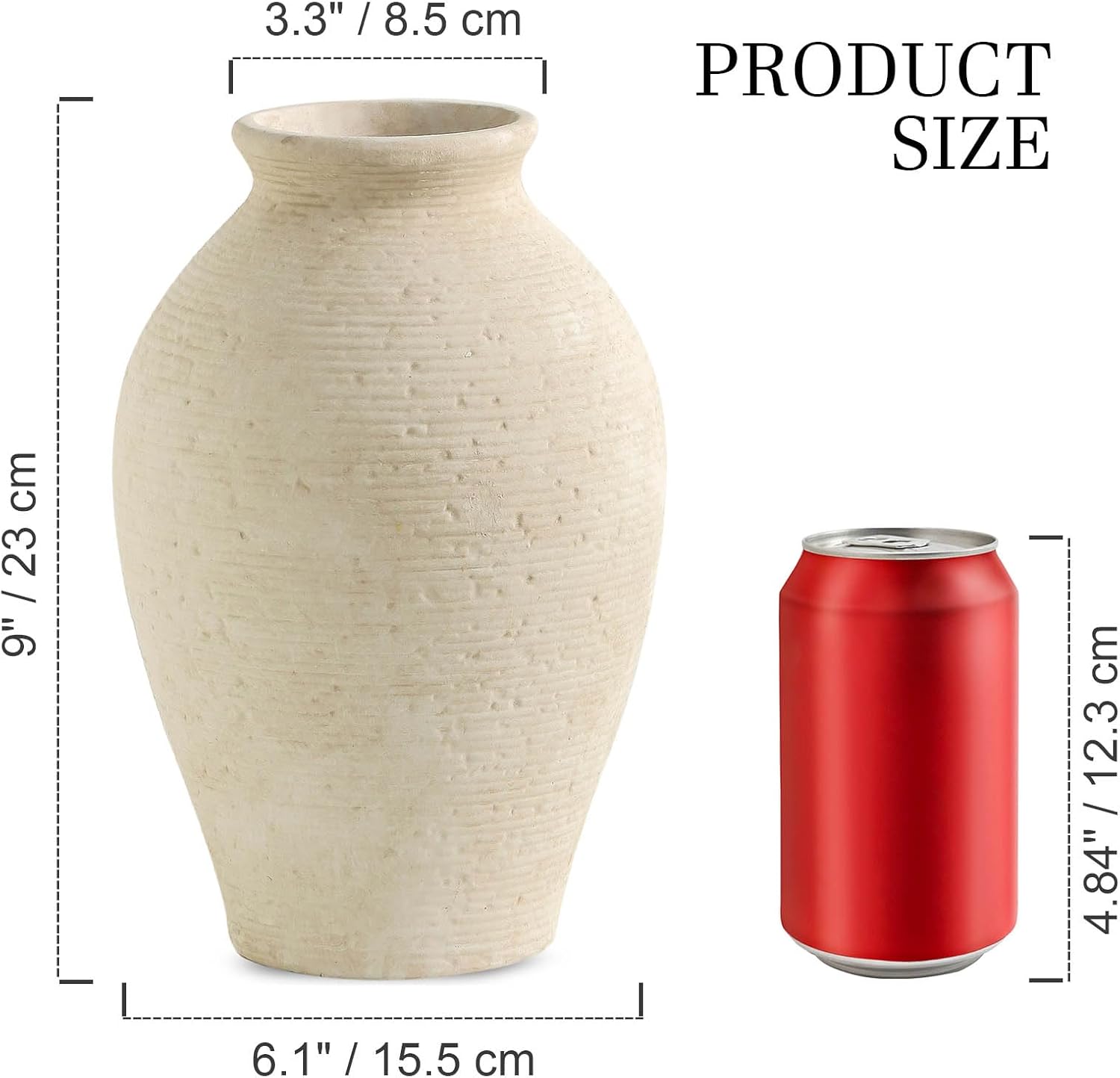 • 【Handcrafted & Rich in Texture】Featuring intricate detailing and a rich texture, this vase complements a variety of home styles—farmhouse, rustic, country, even modern. It effortlessly blends in with existing furniture and accessories, adding a timeless charm and harmonious look to your space. (Note: Each piece is hand-finished, so slight variations in texture make every vase unique.)