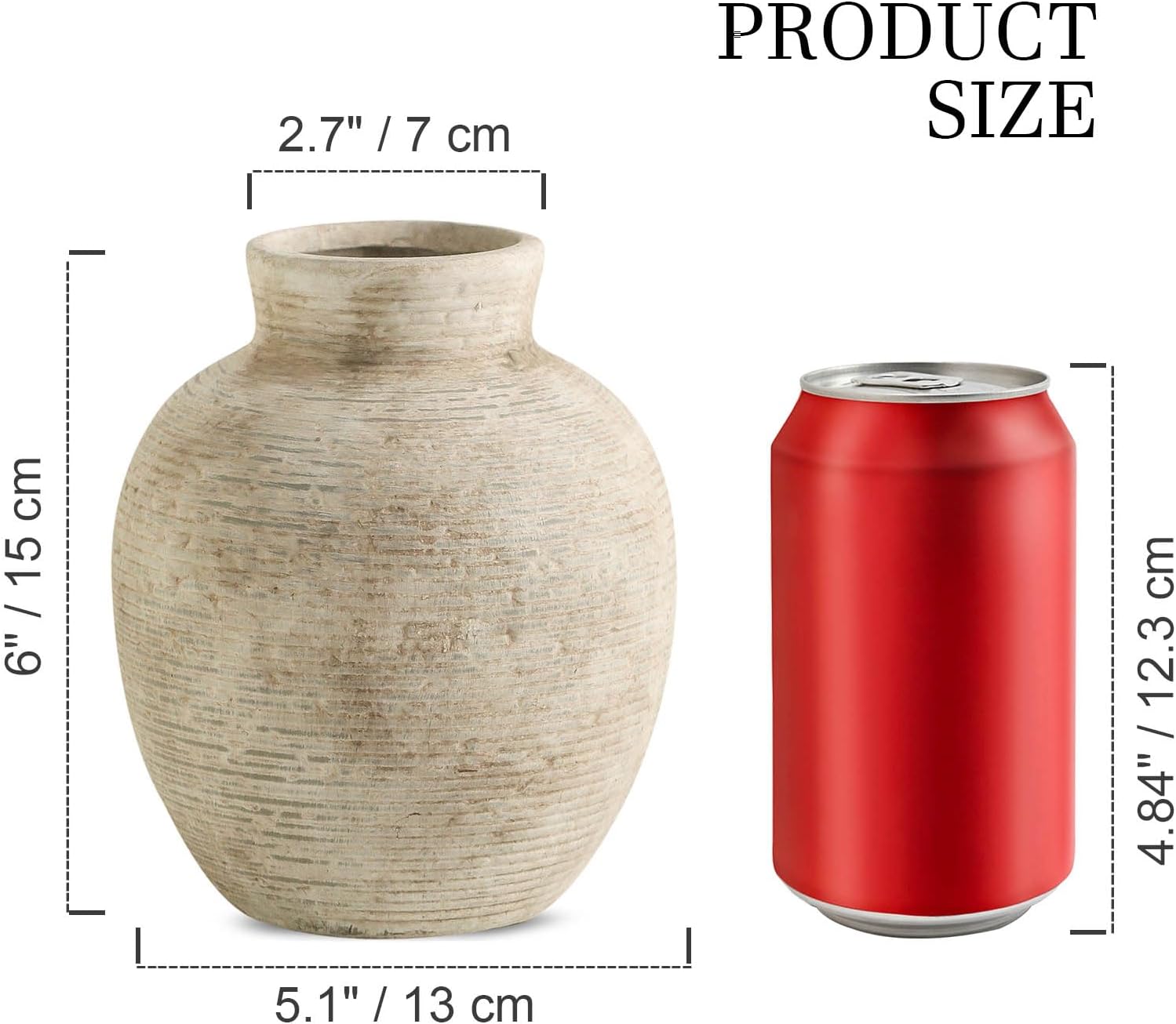 • 【Handcrafted & Rich in Texture】Featuring intricate detailing and a rich texture, this vase complements a variety of home styles—farmhouse, rustic, country, even modern. It effortlessly blends in with existing furniture and accessories, adding a timeless charm and harmonious look to your space. (Note: Each piece is hand-finished, so slight variations in texture make every vase unique.)