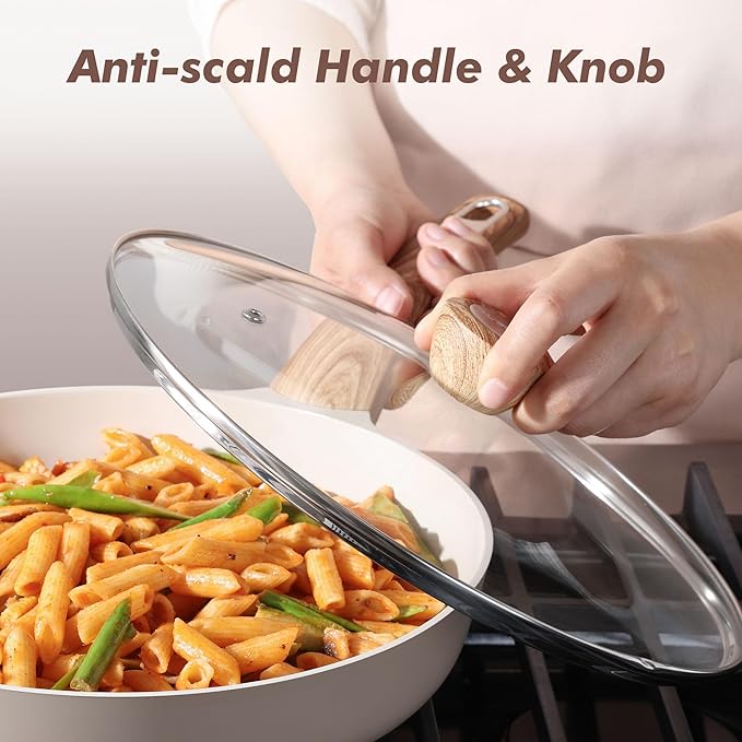 • HEALTHY CERAMIC FRYING PAN - Made of natural ceramic, SGS approved, free of intentionally added PFOA, PTFE, PFAS, PFOS, lead and cadmium, safe and healthy. No toxic substances will be produced even overheated. No coating to come off into your food.