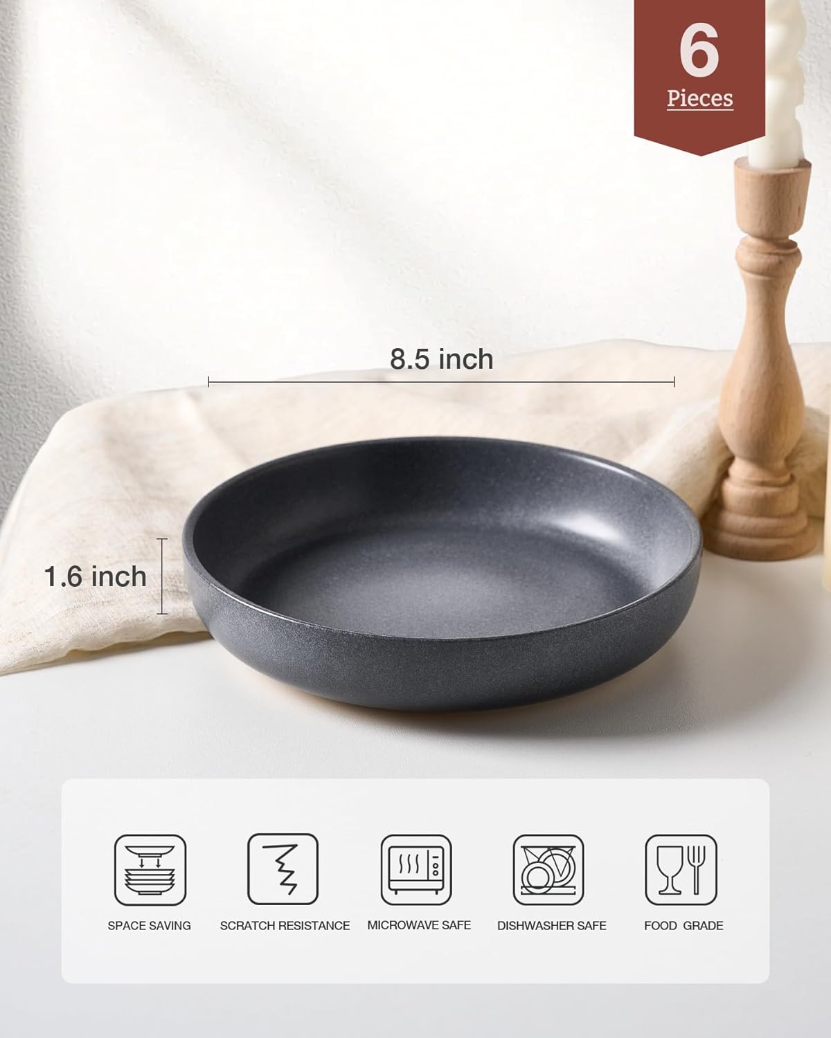 famiware Milkyway 33 oz Bowl Set, Pasta Bowls Set of 6, Salad Bowls Perfect for Your Friend for Housewarming, Thanksgiving, Christmas, Matte Dark Charcoal