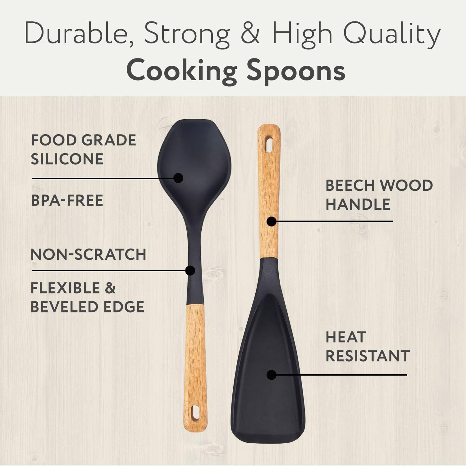Spatula Spoon 2-Pack, Silicone Cooking Spoon for Nonstick Cookwares, Multifunction Kitchen Utensils for Cooking, Serving, Mixing, Scoop, Scrape and More