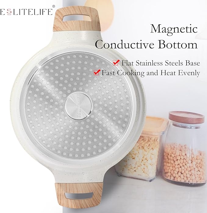 ESLITE LIFE Nonstick Stock Pot with Lid, 7 Quart Granite Casserole Large Soup Pot Pasta Cooking Pot, Induction Compatible, PTFE & PFOA Free, White