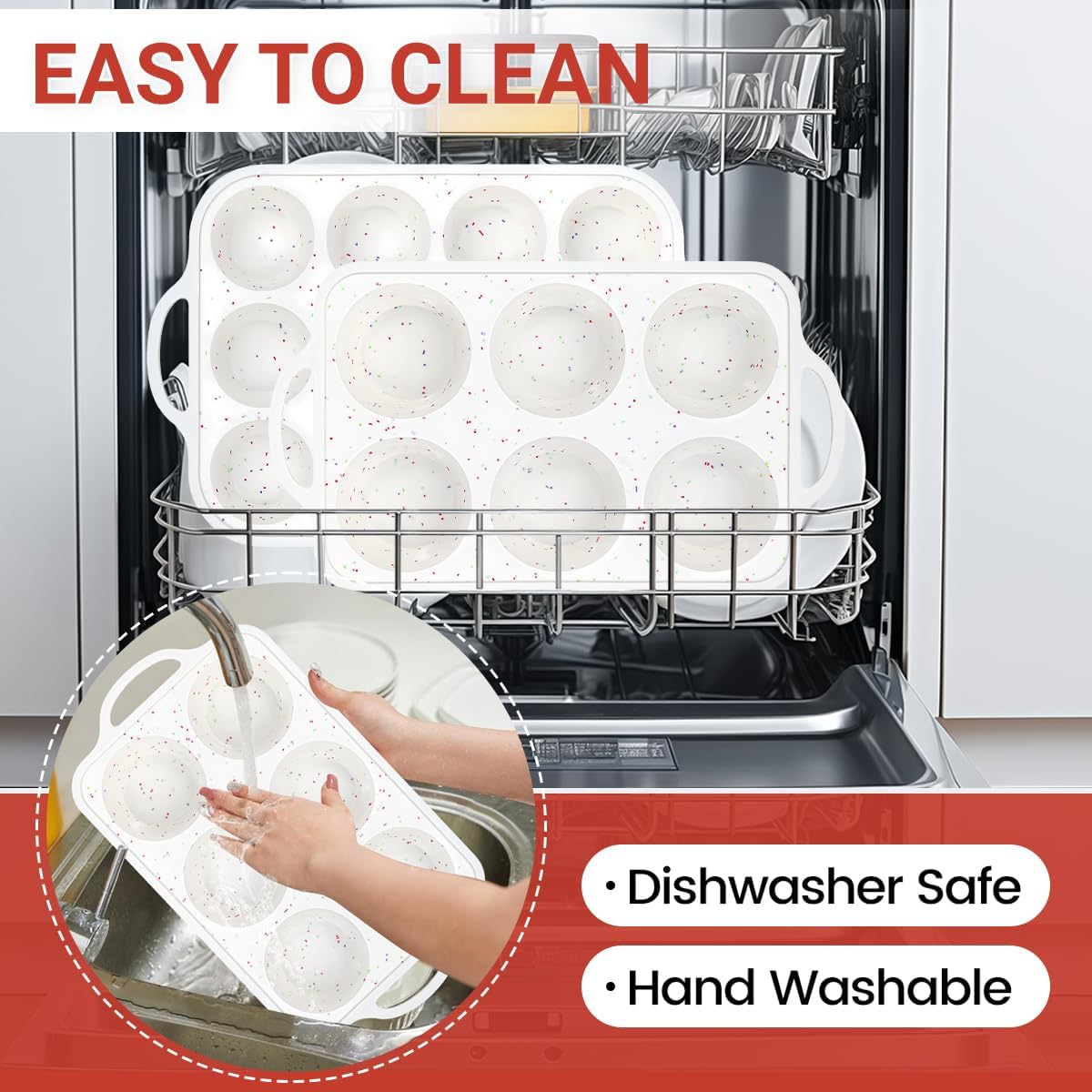 • Easy to Clean: These silicone muffin pans can withstand temperatures from -104 to 446 degrees Fahrenheit, suitable for ovens, microwaves, refrigerators and dishwashers. lt is odorless, non fading