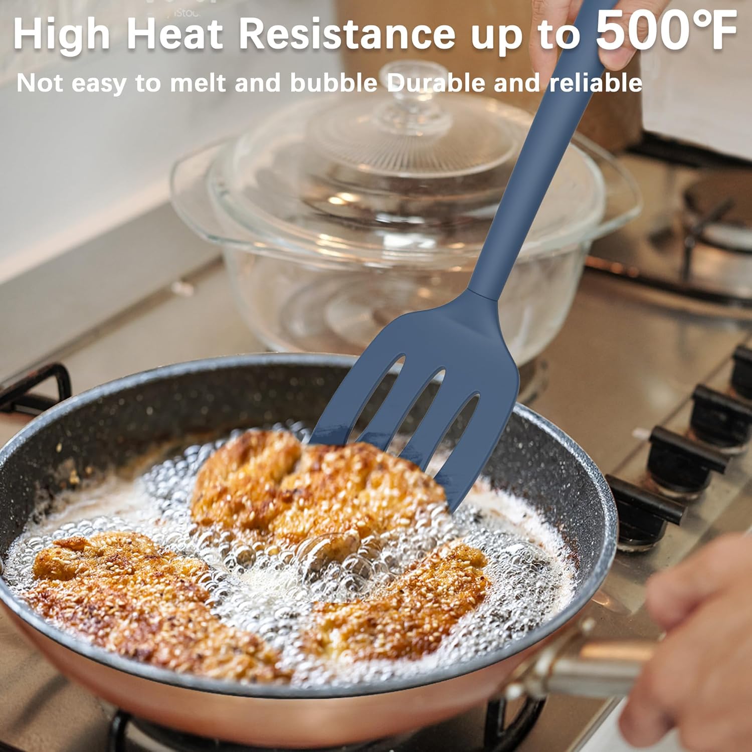 • [Comfortable Silicone Handle]: These silicone kitchen utensils are designed with a sturdy plastic core and thickened silicone handle for a firm, heat-insulated grip, the slim head ensures precise control