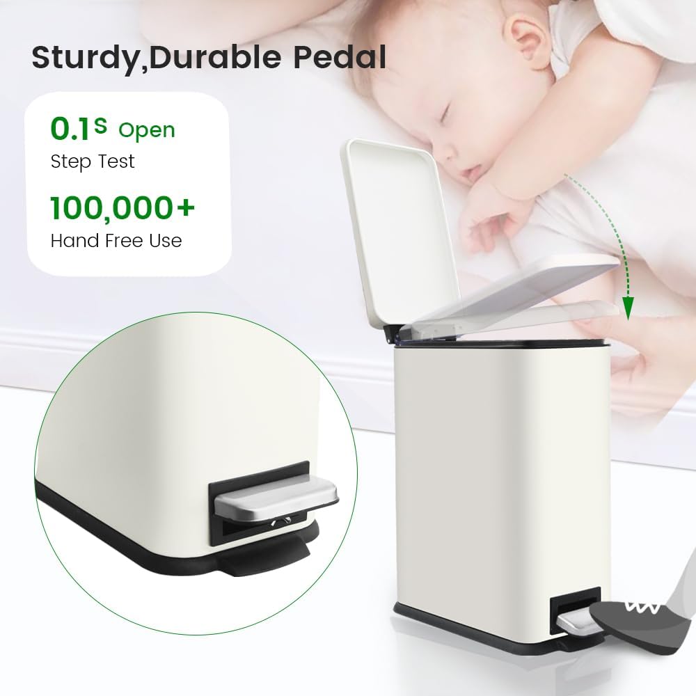 • Hands-Free & Built to Last: Our ultra-durable steel pedal is rigorously tested to withstand 80,000+ steps—Effortlessly open the lid with a gentle press, keeping hands clean.