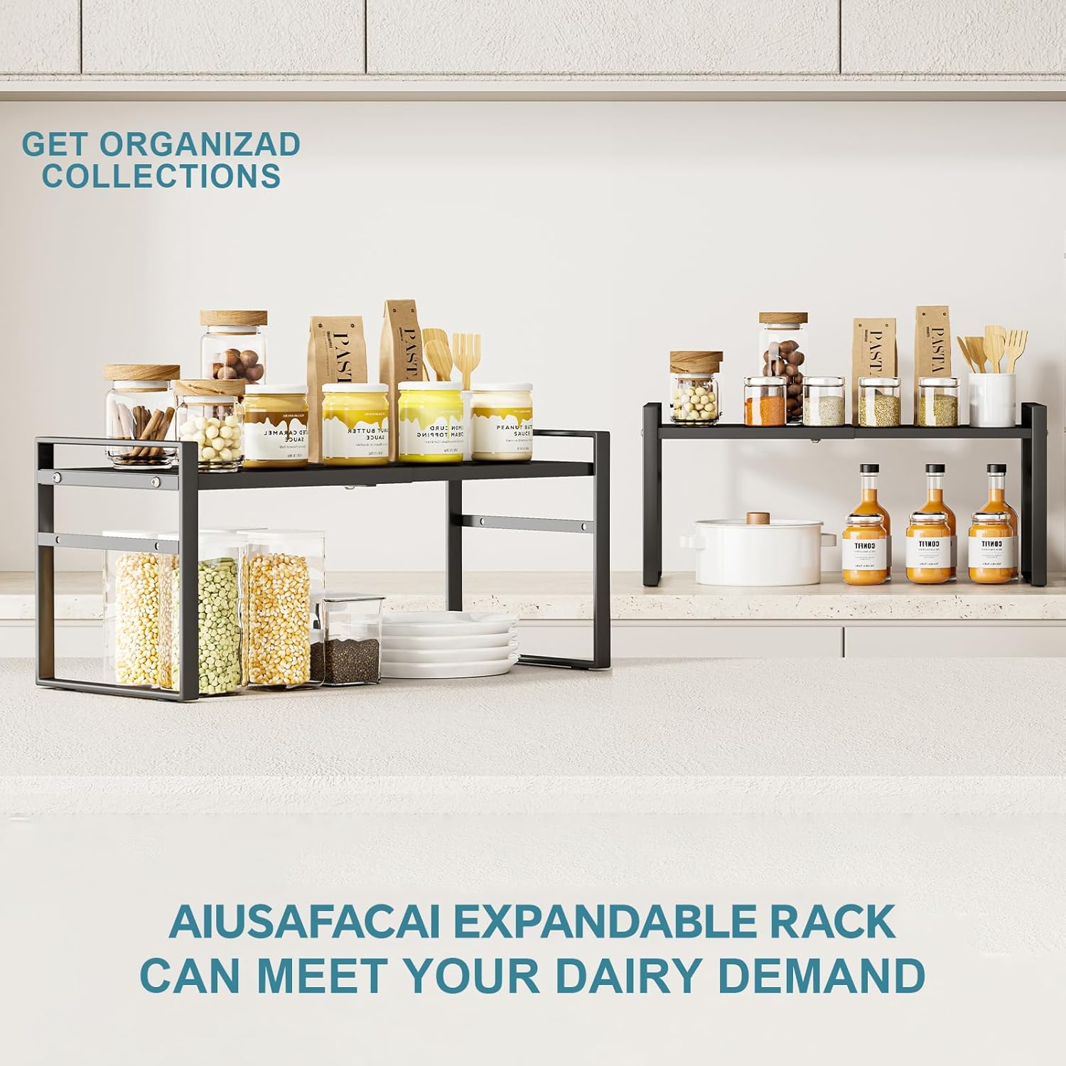 Expandable Cabinet Shelf Organizer Riser for Kitchen Pantry Cupboard Under Sink Countertop Home Storage Organization Rack Space Saver