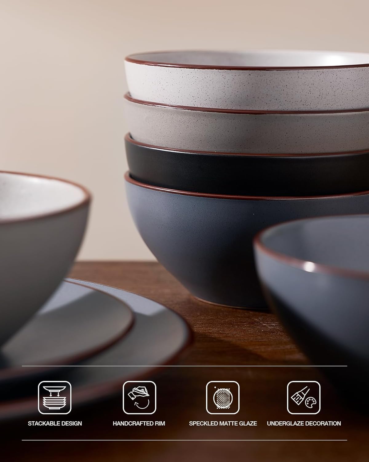 • [Premium ceramic durability]: Our dishes have commendable weight and thickness, resist chipping, and daily wear, ensuring reliable kitchen use