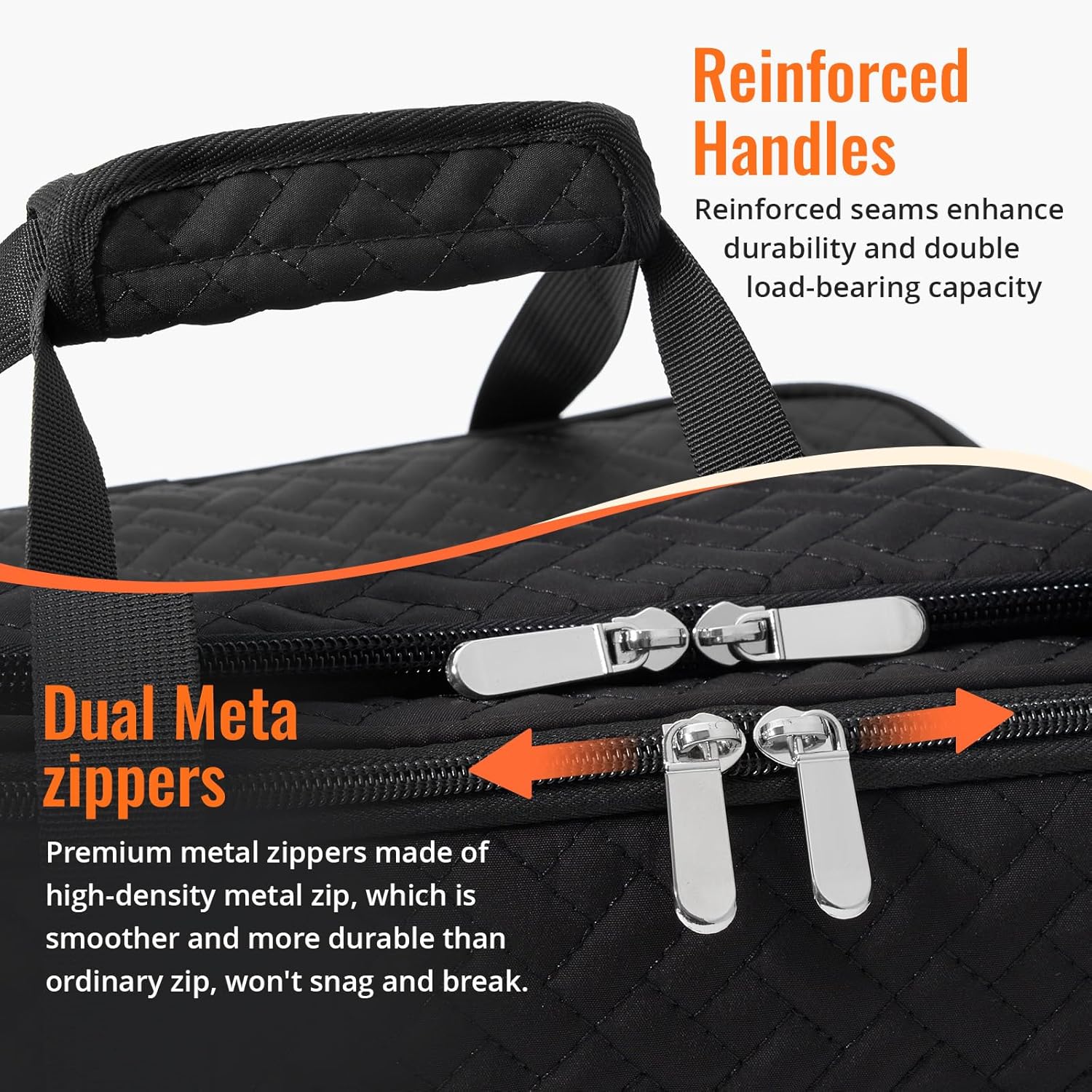 • 【Smart & Secure】This insulated casserole carrier features a two-way zipper design that provides easy access to your items and minimizes the risk of spills. The dual handles with padded wrap make it easy to carry, You can comfortably carry the product.Our zip on this casserole carriers for hot or cold Food is made of high-density metal zip, which is smoother and more durable than ordinary zip, won't snag and break.