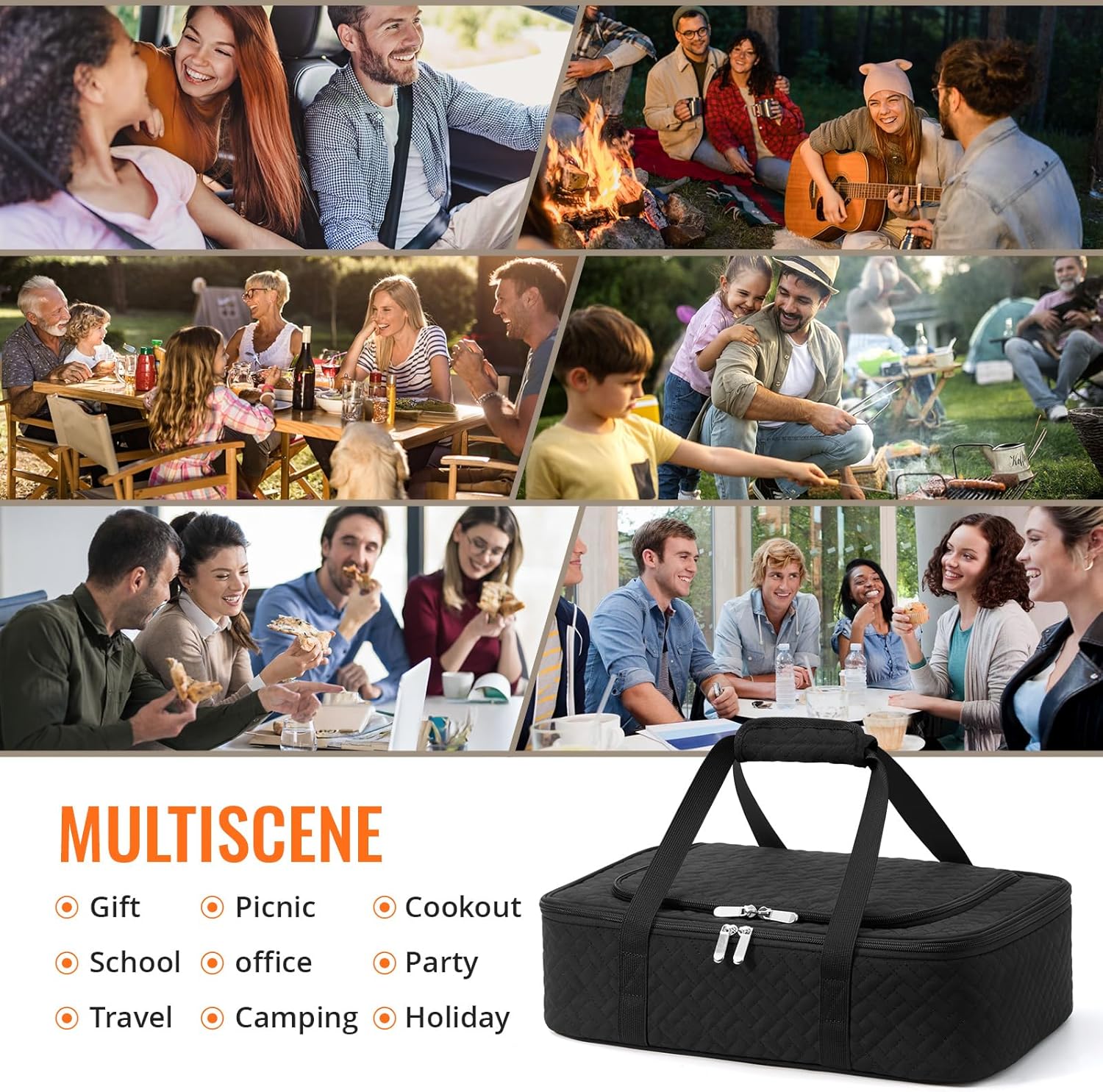 Insulated Casserole Carrier - Portable Casserole Carrier for Hot or Cold Food, Lasagna Holder for Parties,Picnic,Cookouts,Traveling - Fits 9" x 13" Baking Dish (Black)