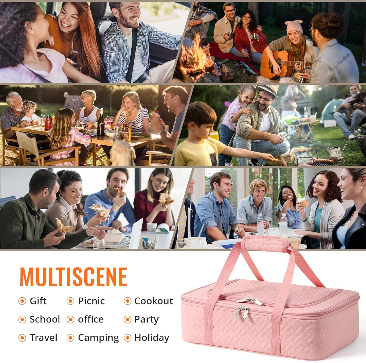 • 【Casserole Carrier Travel Bag】This insulated casserole carrier (17.12"L x 11.42"W x 4.53"H) securely fits 9"x13" to 10"x15" baking dishes while maintaining optimal food temperature.