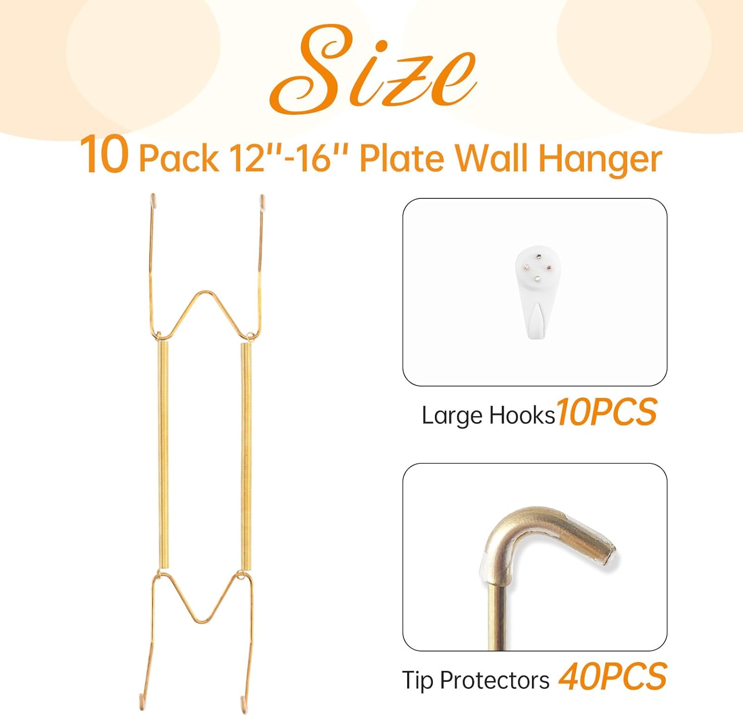 • Package Inclusion: Our package includes 10 wall plate hangers, 10 wall hooks, 40 rubber tip protectors, 1 instruction, fit for holding 12-16 inch round or square plates. You can create a variety of arrangements to decorate your plates to fully meet your hanging and display requirements.