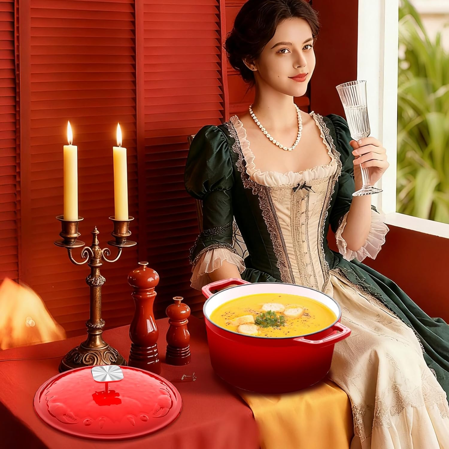 Dutch Oven Pot with Lid - Cast Iron Dutch Oven for Bread Baking Sourdough, Casserole and Braiser with Crab Lid, Square Knob, Nonslid Handles - Red