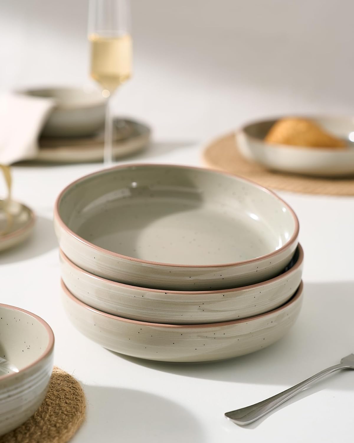 • HANDCRAFTED - Featuring a simple, stylish design, these pasta plates are handcrafted and glazed with a double-reactive glaze for a unique, dreamy color. Shades may vary on the glaze, showcasing the one-of-a-kind beauty of our handcraft