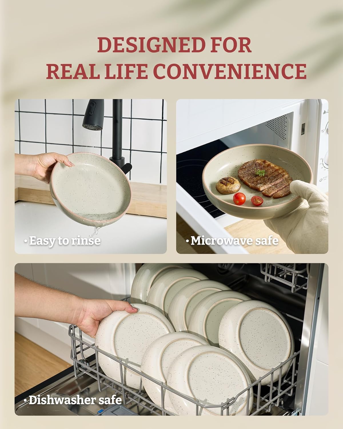 • WITHSTAND THE TEST OF TIME - Made of organic and natural clay, these bowl plates are fired at 2340℉ for 13.5 hours, durable and shatterproof for long-term use