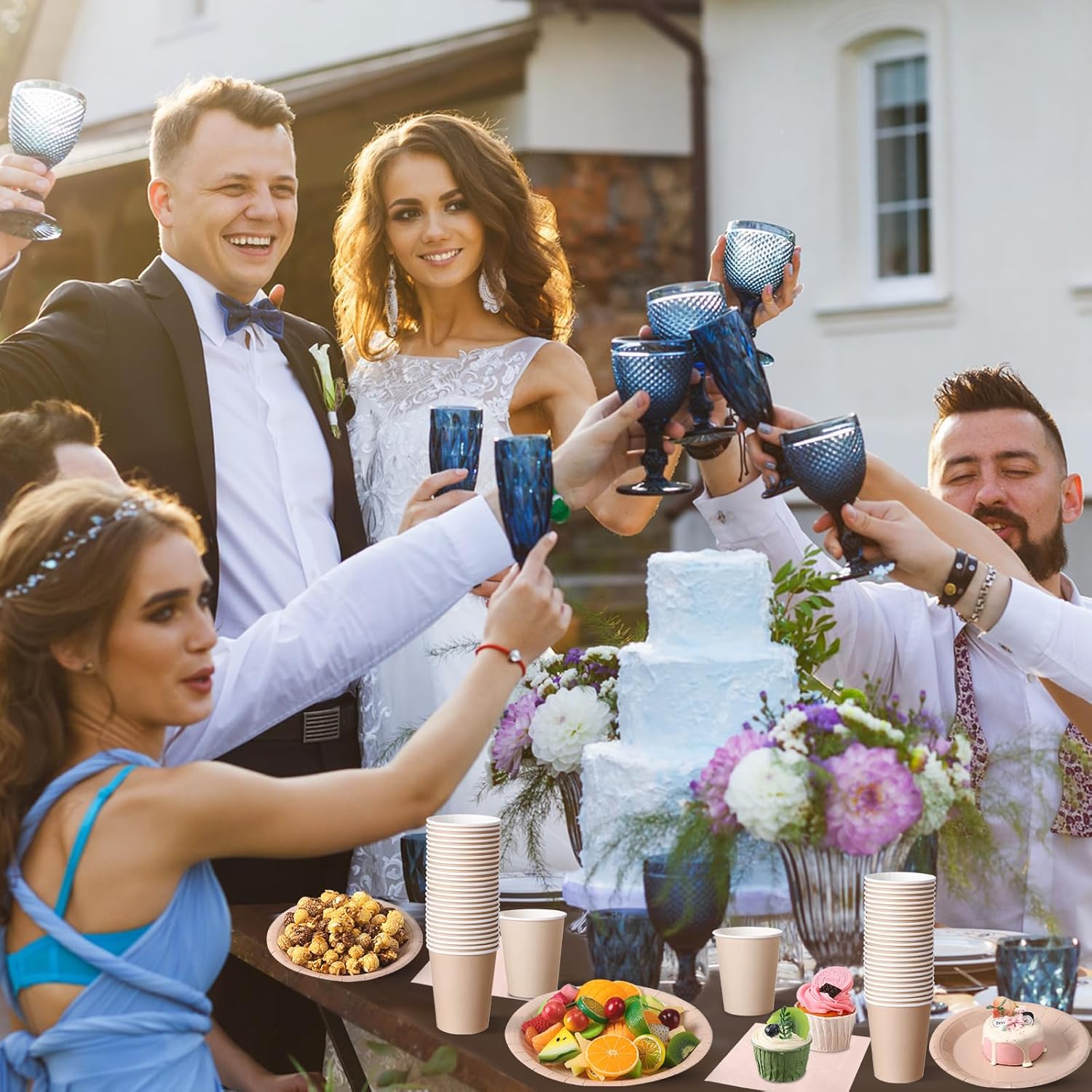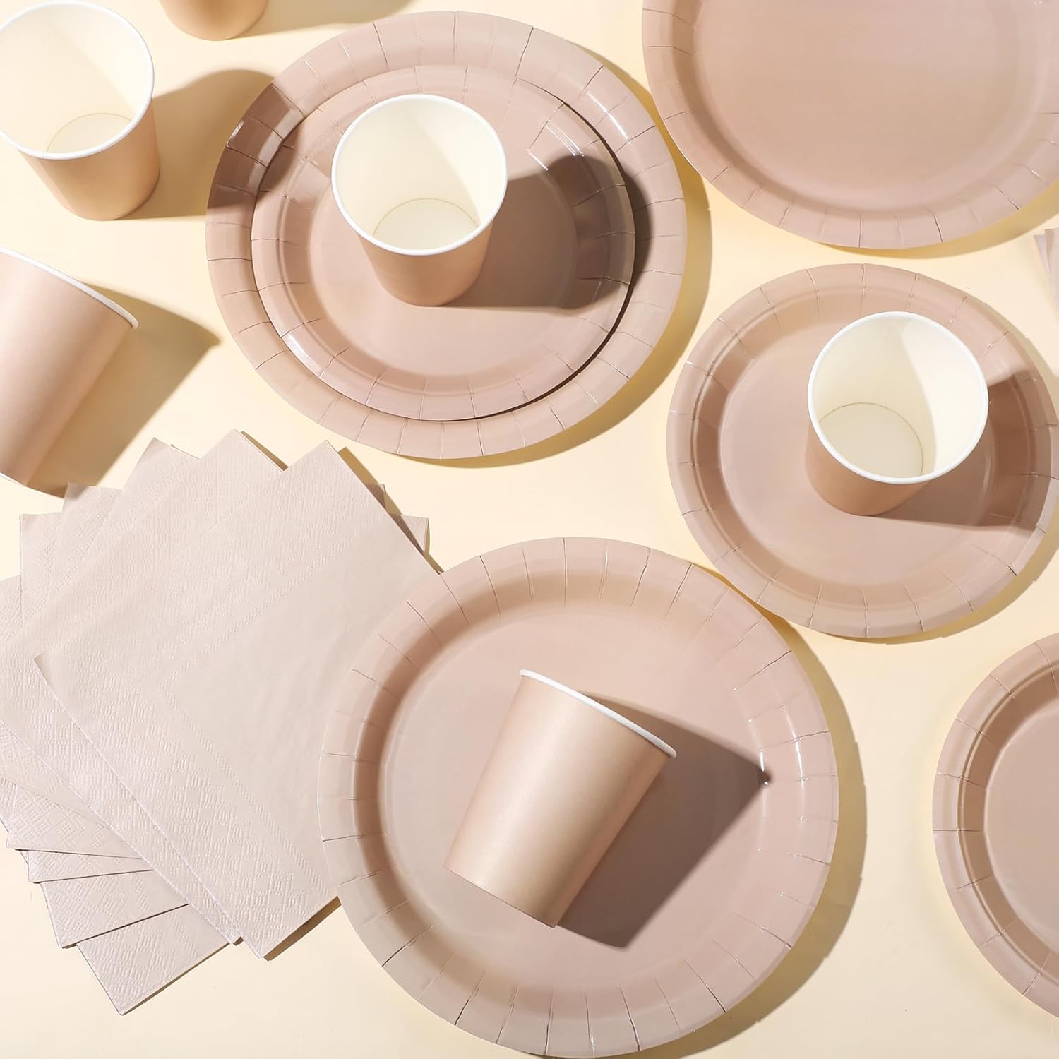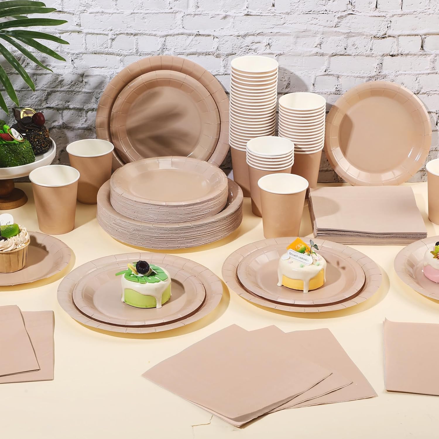 Tioncy 200 Pcs Disposable Paper Plates Cups and Napkins Party Supplies Serve 50 Guests Disposable Paper Dinnerware Set for Halloween Birthday Wedding Baby Shower Family Picnic(Deep Nude)