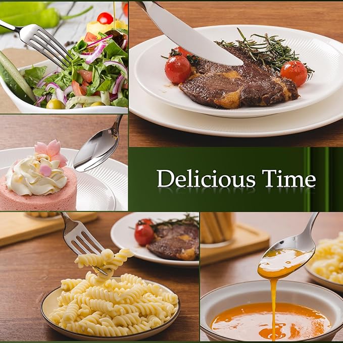 • Good Stainless Steel: This dinnerware is made of good quality stainless steel that is antirust and anti-corrosion, heavier than others, but not too heavy and not easily crooked. You can get a good experience in your daily use