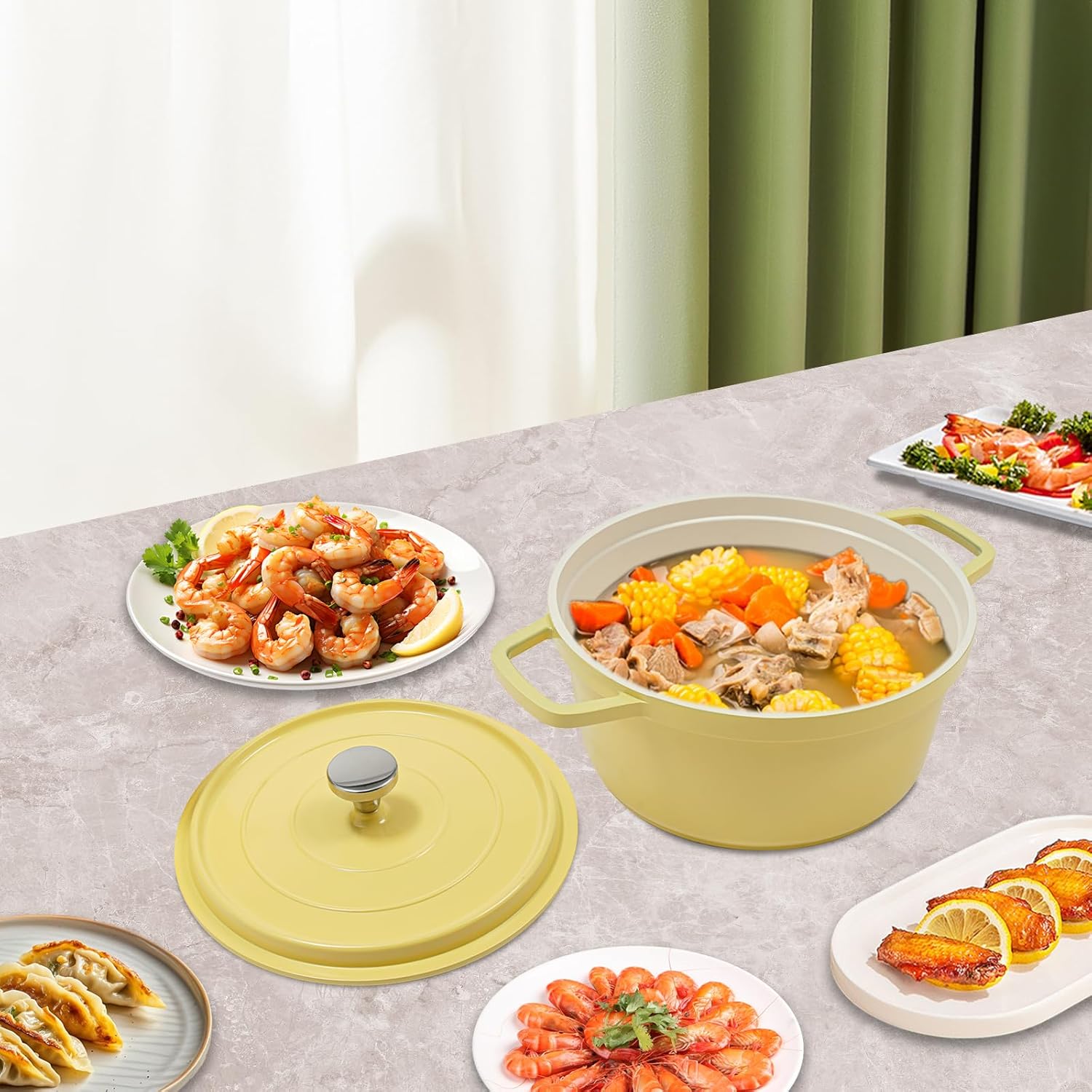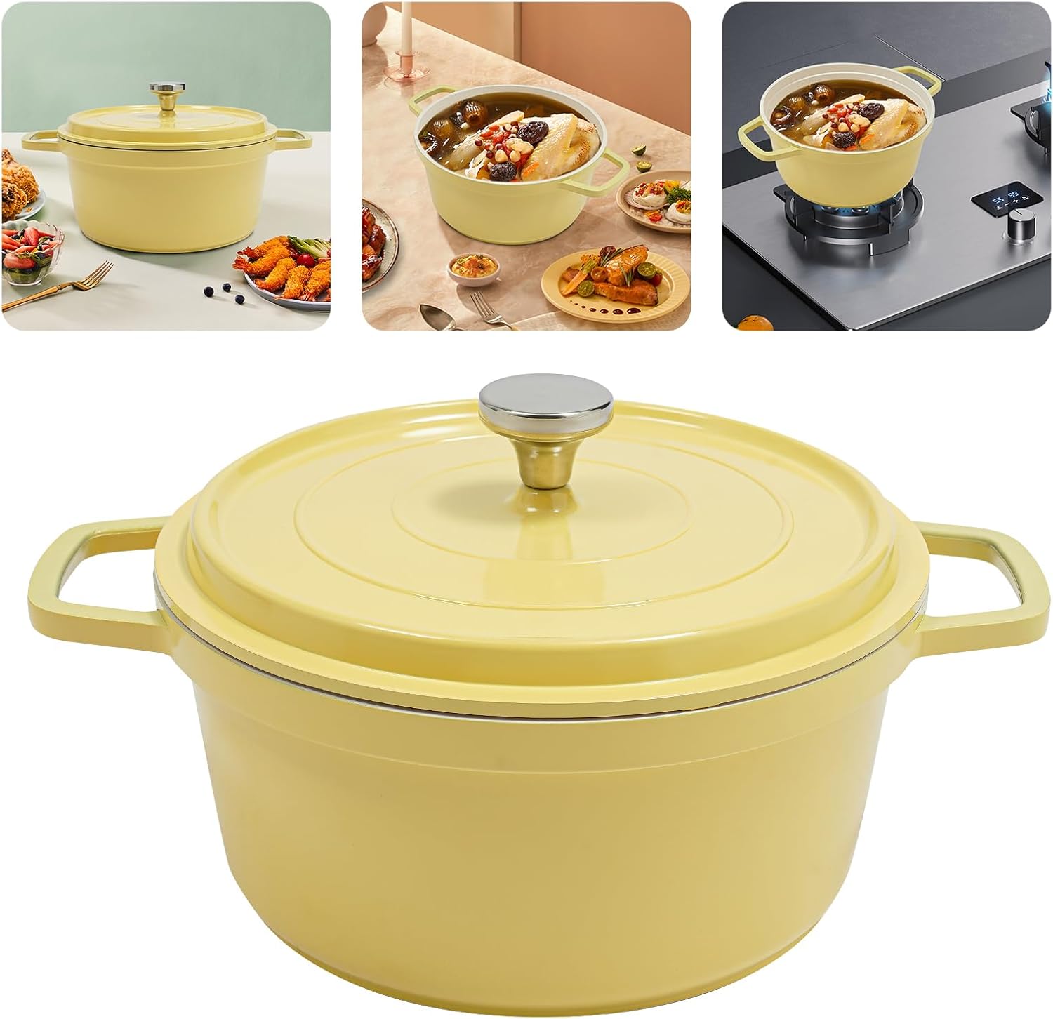 • LARGE CAPACITY DESIGN: The capacity of the modern round dutch oven pot is 1.06 gallon, the large capacity design can cook more food at one time and meet the needs of more than one person. Let you and your family enjoy delicious food