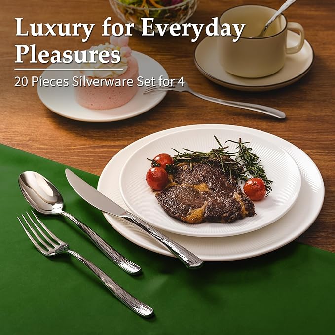 Aisoso 20-Piece High-End Silverware Set with Stone Patterned Handle Mirror Finished Stainless Steel Serving Utensils for 4, Durability and Dishwasher Safe for Home, Restaurant, Weddings