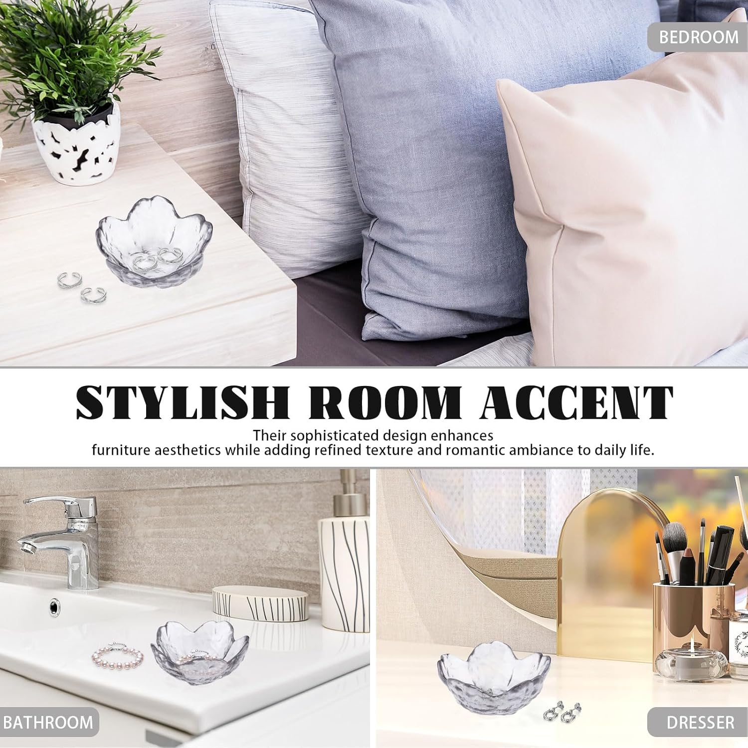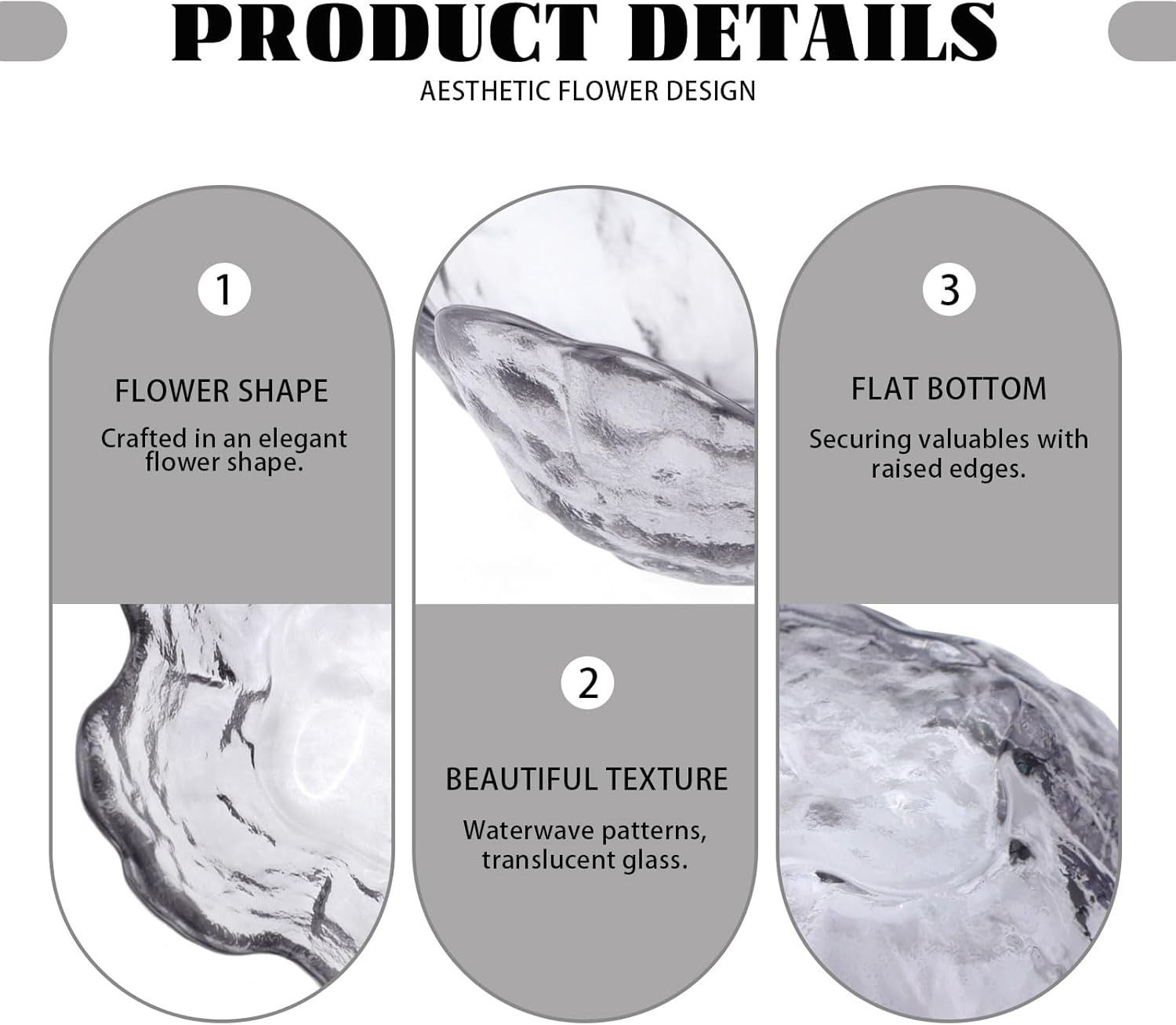 • Aesthetic Flower Design: Crafted in an elegant flower shape, this jewelry dish features a smooth interior and waterwave patterns on its crystal-clear surface, creating dazzling light reflections to showcase your rings' brilliance
