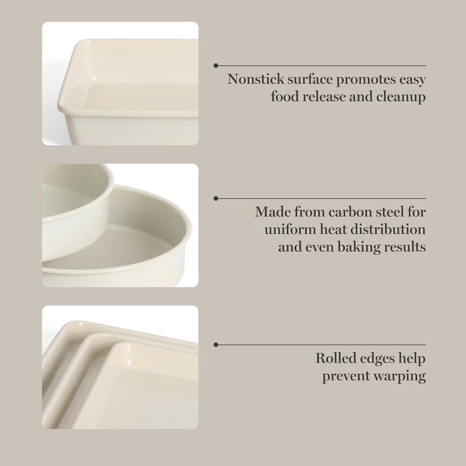 • NONSTICK INTERIOR: A complete collection of carbon steel bakeware with a nonstick surface that's both easy to grease and convenient to clean. Suitable for baking and browning pastries, cakes, cinnamon rolls or roasting vegetables and any type of protein, these pans require less oil or butter to release food smoothly.