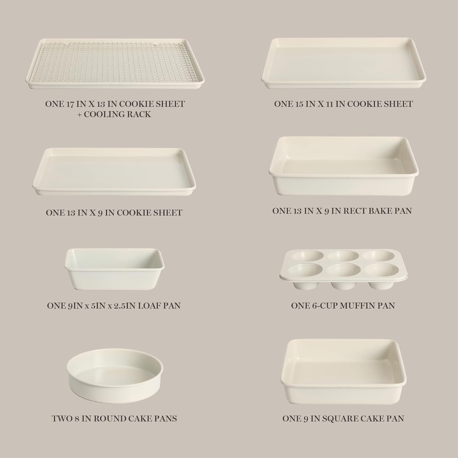 Martha Stewart Gallen 10 Piece Baking Pans Ceramic PFA Free Non Toxic Non Stick Bakeware Set - Linen White