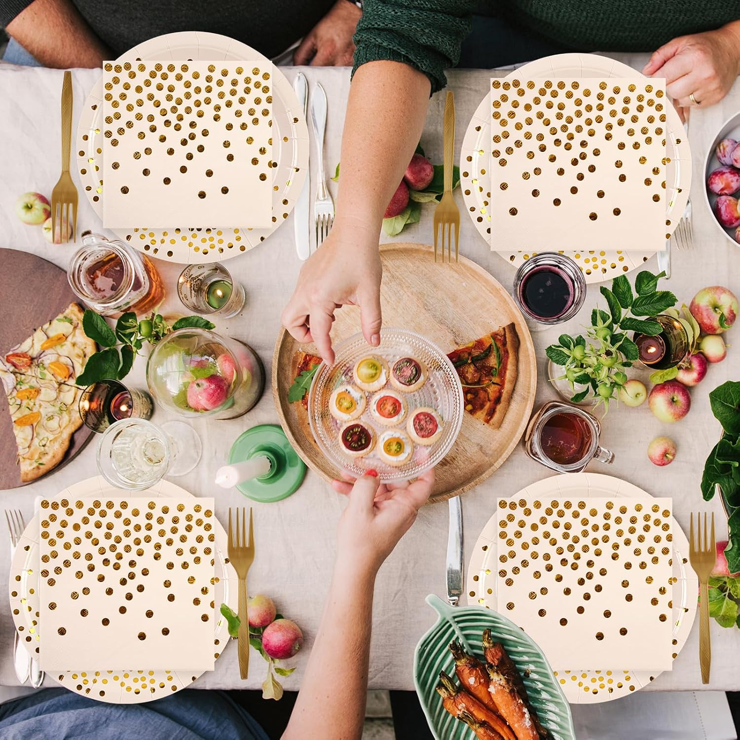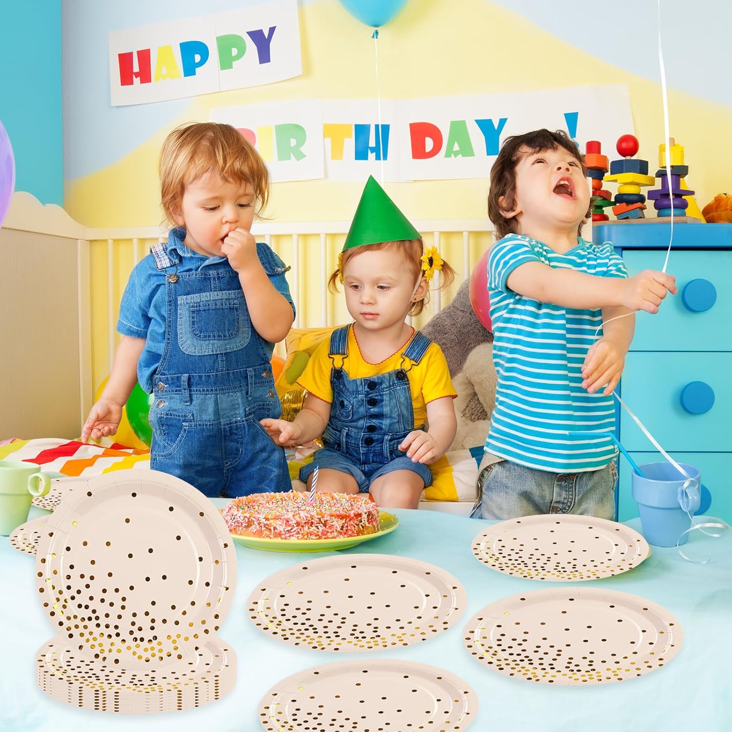 • Golden Dot Design: Birthday plates and napkins are decorated with gold polka dots in a very stylish and aesthetically pleasing design with brilliant and attractive colors, every guest will love this beautiful design, ideal for multiple themed celebrations