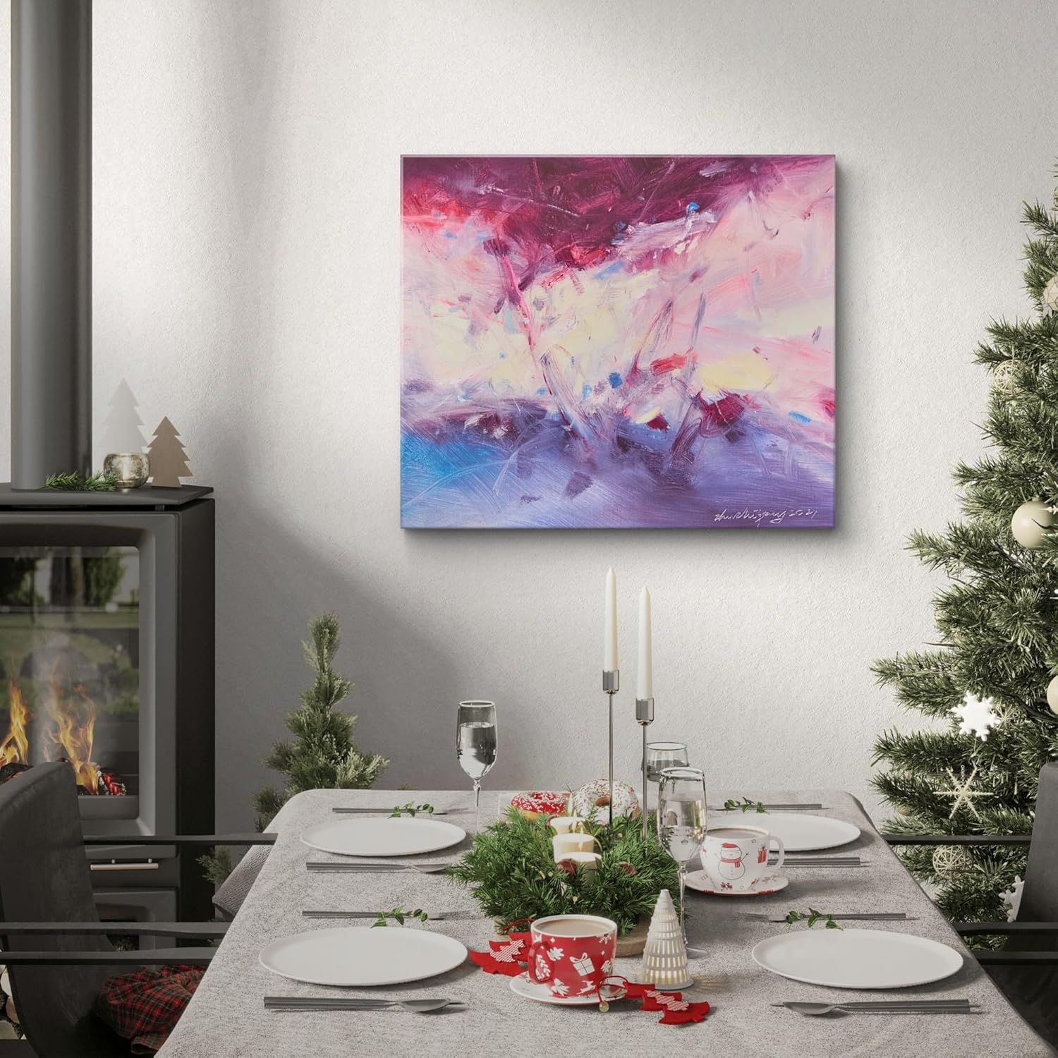 • Artist-Authorized Reproduction — Dream of Kaleidoscope blends violet, pink, yellow, and teal in flowing strokes, like fragments of a kaleidoscope shifting in light. The composition conveys a dreamlike sense of imagination and harmony.This canvas wall art reproduction is an artist-authorized print, keeping the style and detail of the original painting. The artwork wall decor adds both artistic value and decorative beauty to your home.