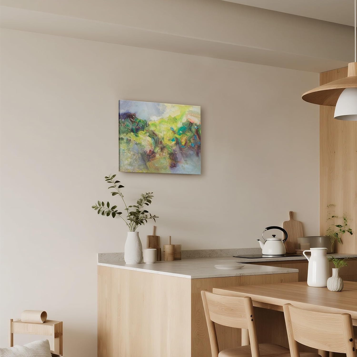 • Artist-Authorized Reproduction — Rhythm of the Sky unfolds in luminous strokes of yellow, green, and violet, blending with soft light to suggest the vastness and motion of the sky. This artist-authorized canvas wall art preserves the detail of the original, offering modern abstract wall decor that is both dynamic and serene—perfect for your living room, bedroom, or office.