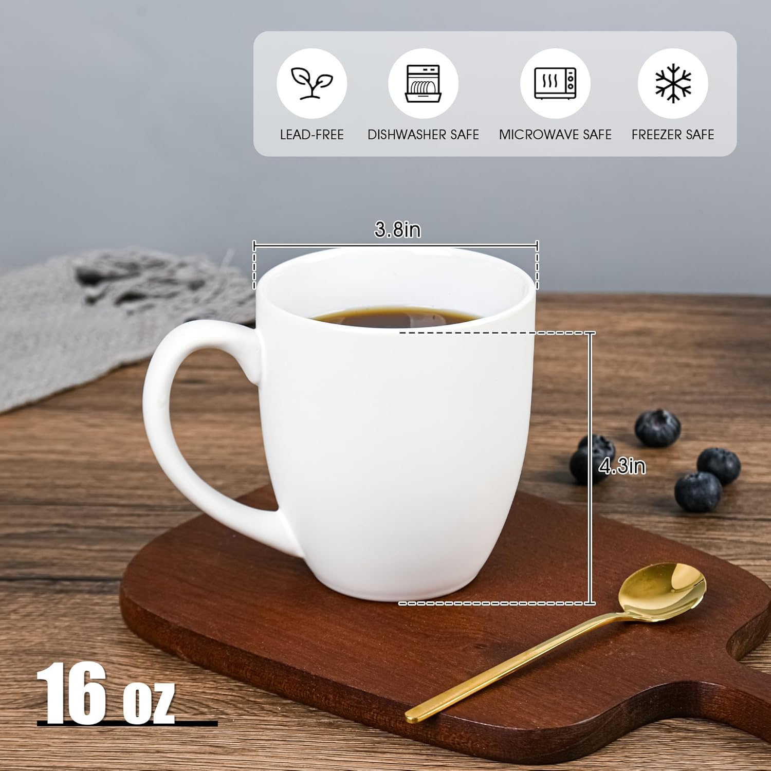 • The 16oz coffee mug set comes with 6 mugs.This ceramic cup set is pure white inside and matte white outside, simple and generous, and able to match different home decor styles. suitable for a family's use