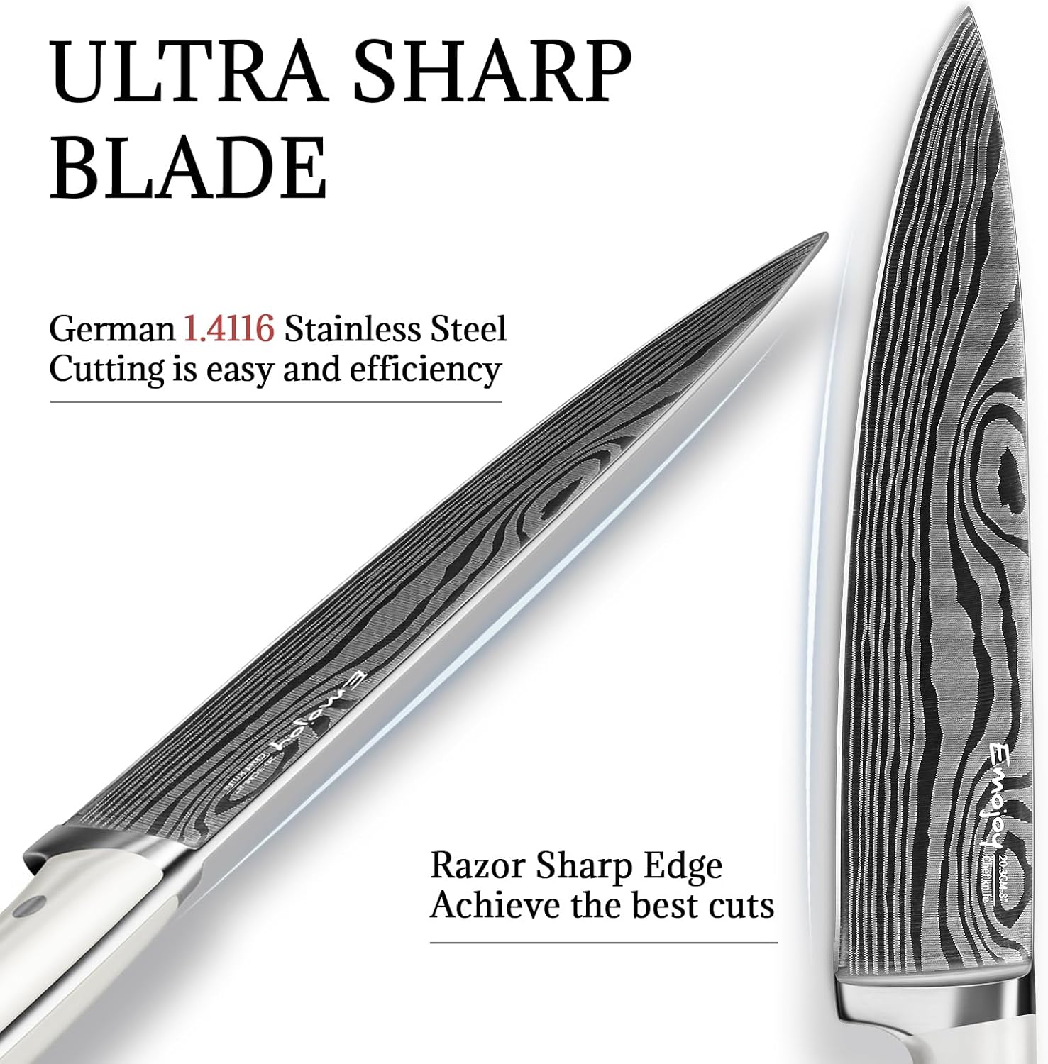 • 【 BEST GIFT AND LIFETIME WARRANTY】 Luxurious white knife set is the perfect gift choice for Housewarming, Valentine's Day, Wedding, Birthday, Thanksgiving, Halloween, Christmas. Each EOMJOY knife set are backed by excellent quality and undergo strict quality inspection, we provide a lifetime warranty for every customer, please feel free to purchase.